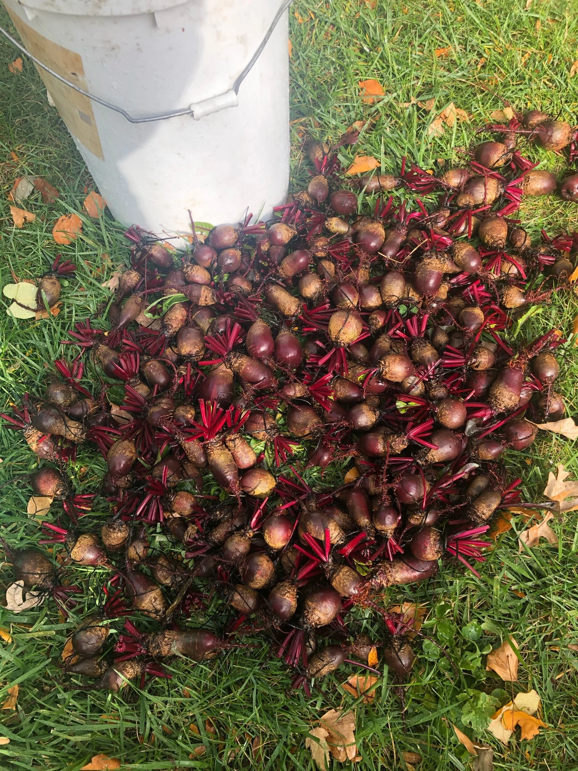Above, just a portion of yesterday’s beet harvest. Looks to be a good crop.