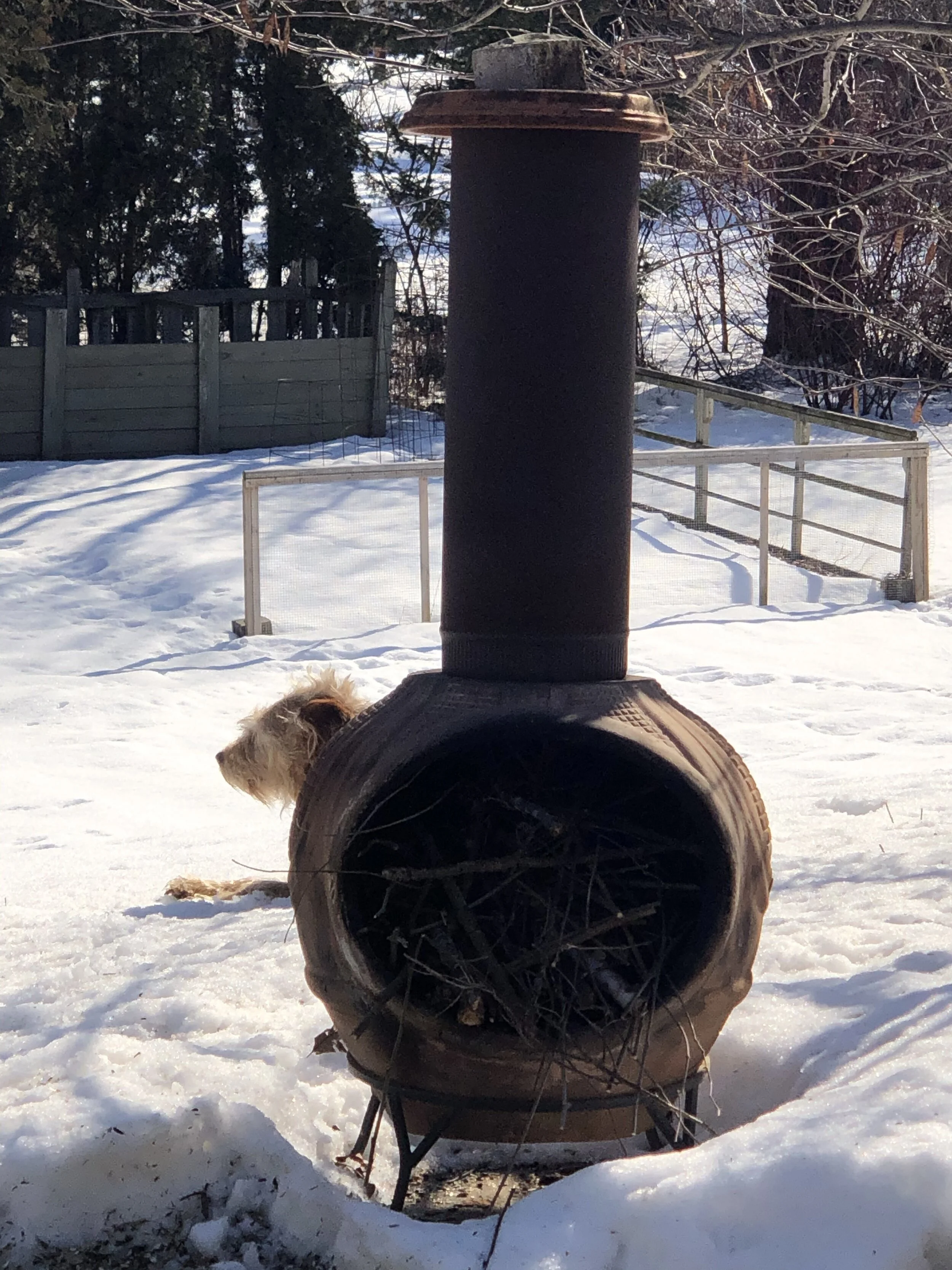 We did a little bench sitting, too, on the back patio, watching snow melt. Pax reluctant to come back in.