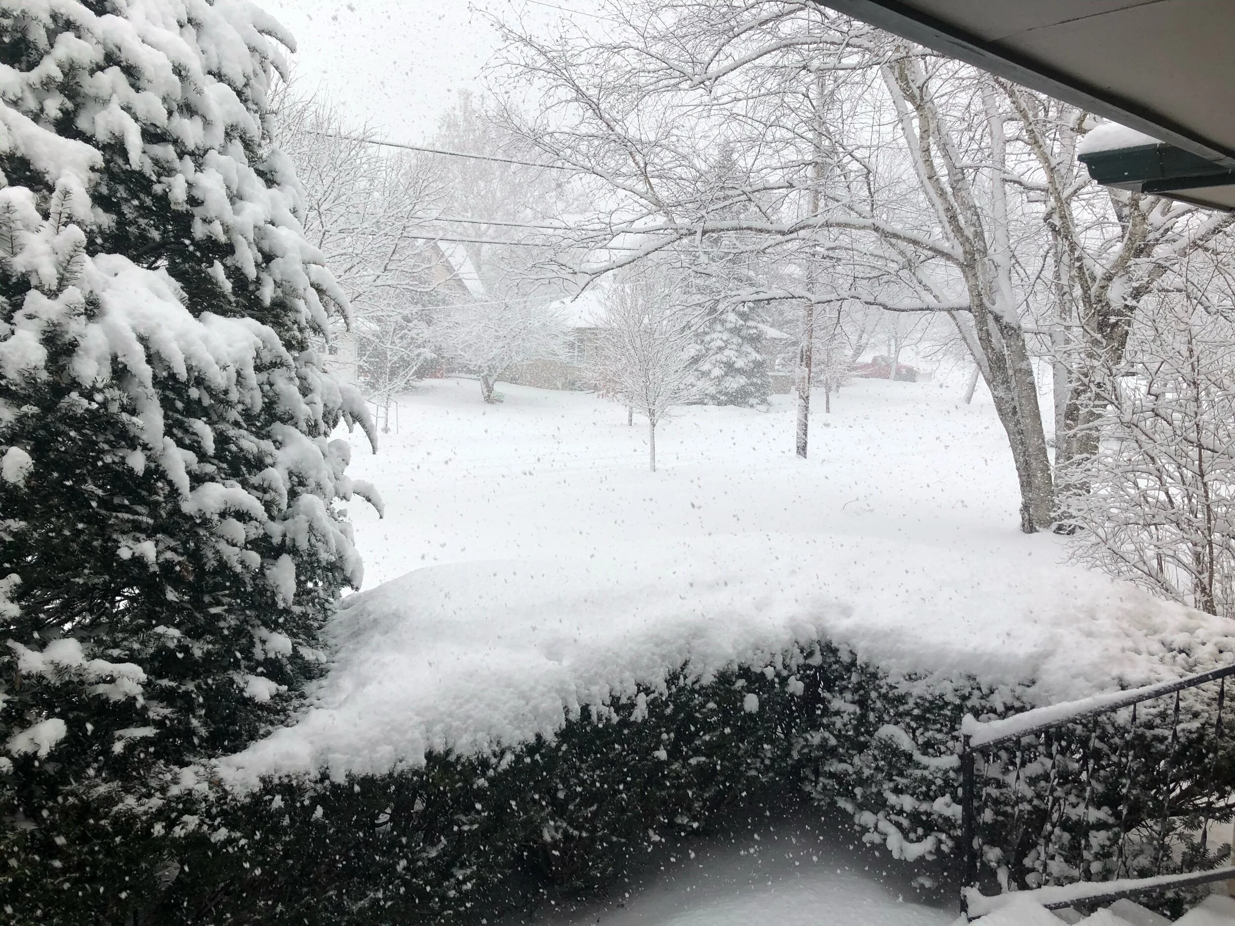 Lots and heavy. Many neighbors helping each other as it tapered off late, but still a real workout. And, a real ice-wrecker.