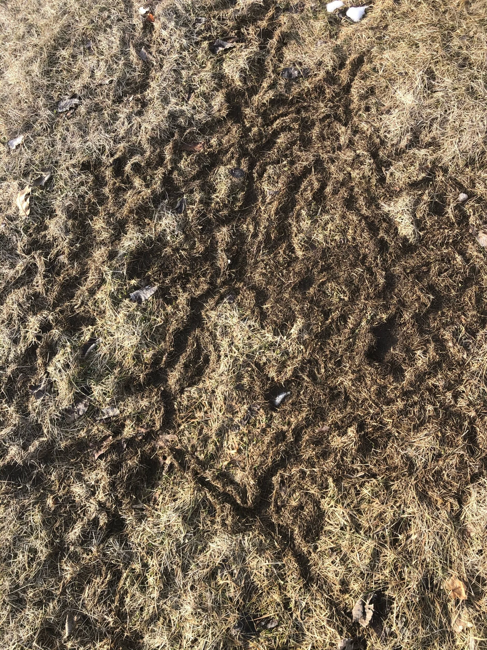 Lots of snow gone; lots of snow remaining. And where it’s gone, traces of life in the former subnivean zone.
