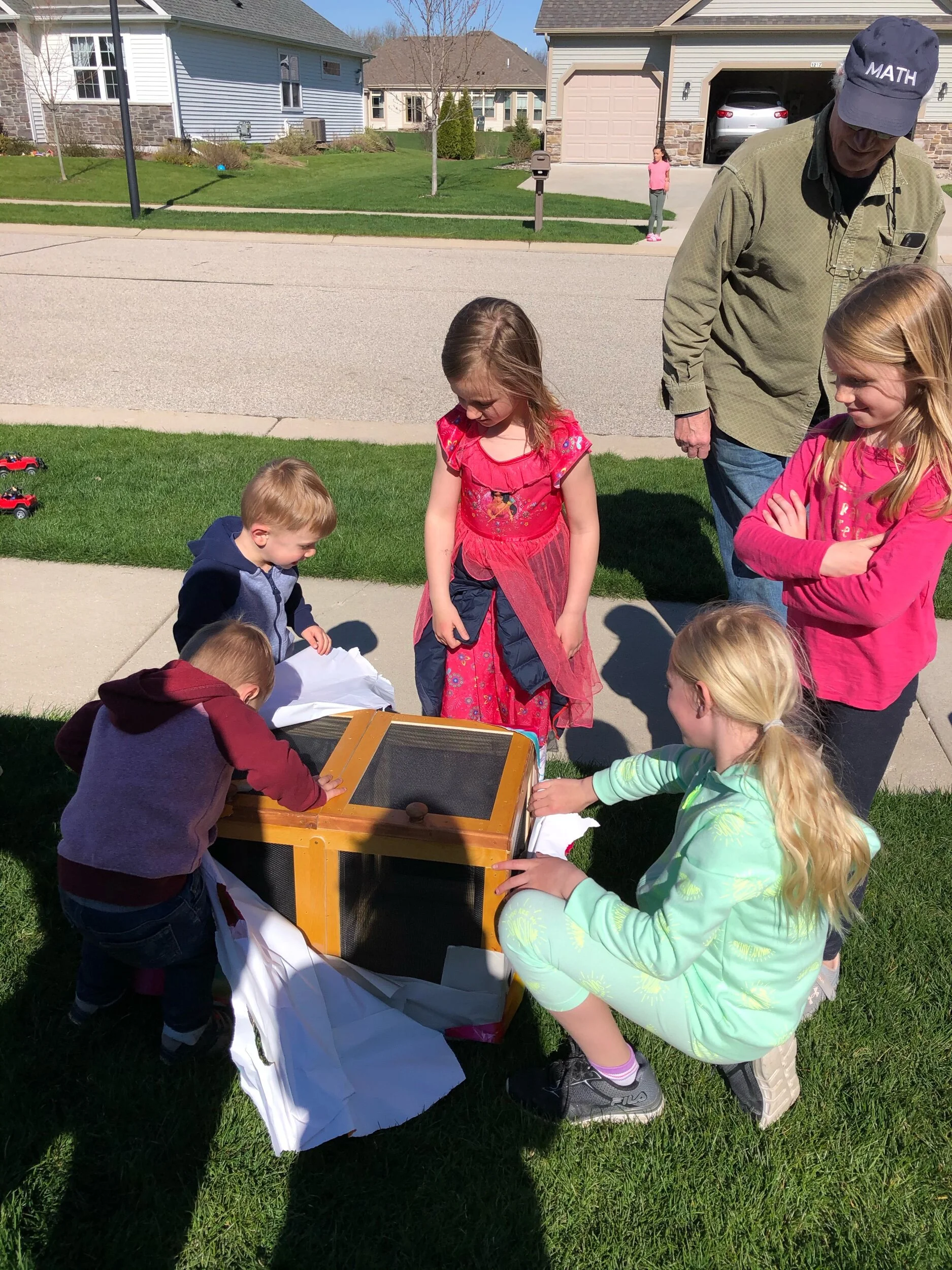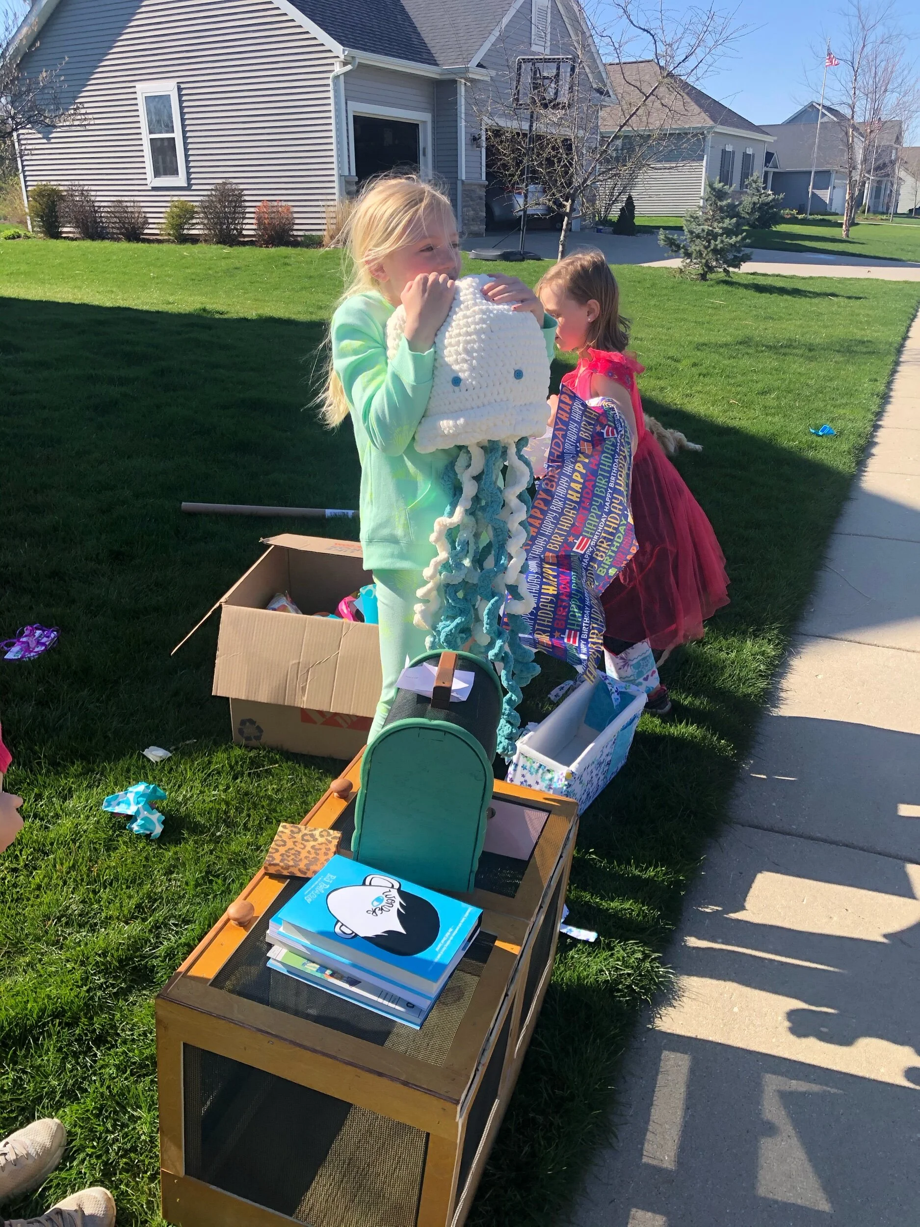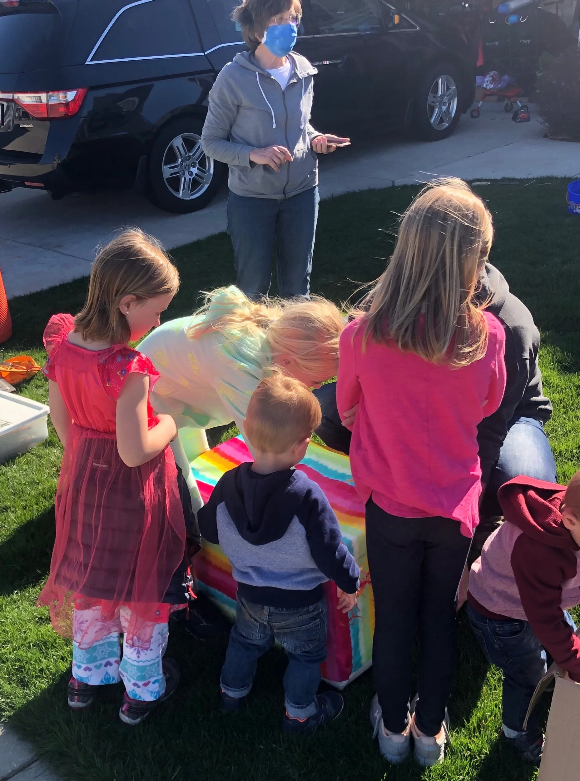 We were part of a multiple car parade, honking and waving, with signs and balloons, in what now passes for a 10-year-old birthday party. Unlike the other participants, however, we made a second pass and then stopped. Slight break in the rules, but worth it.