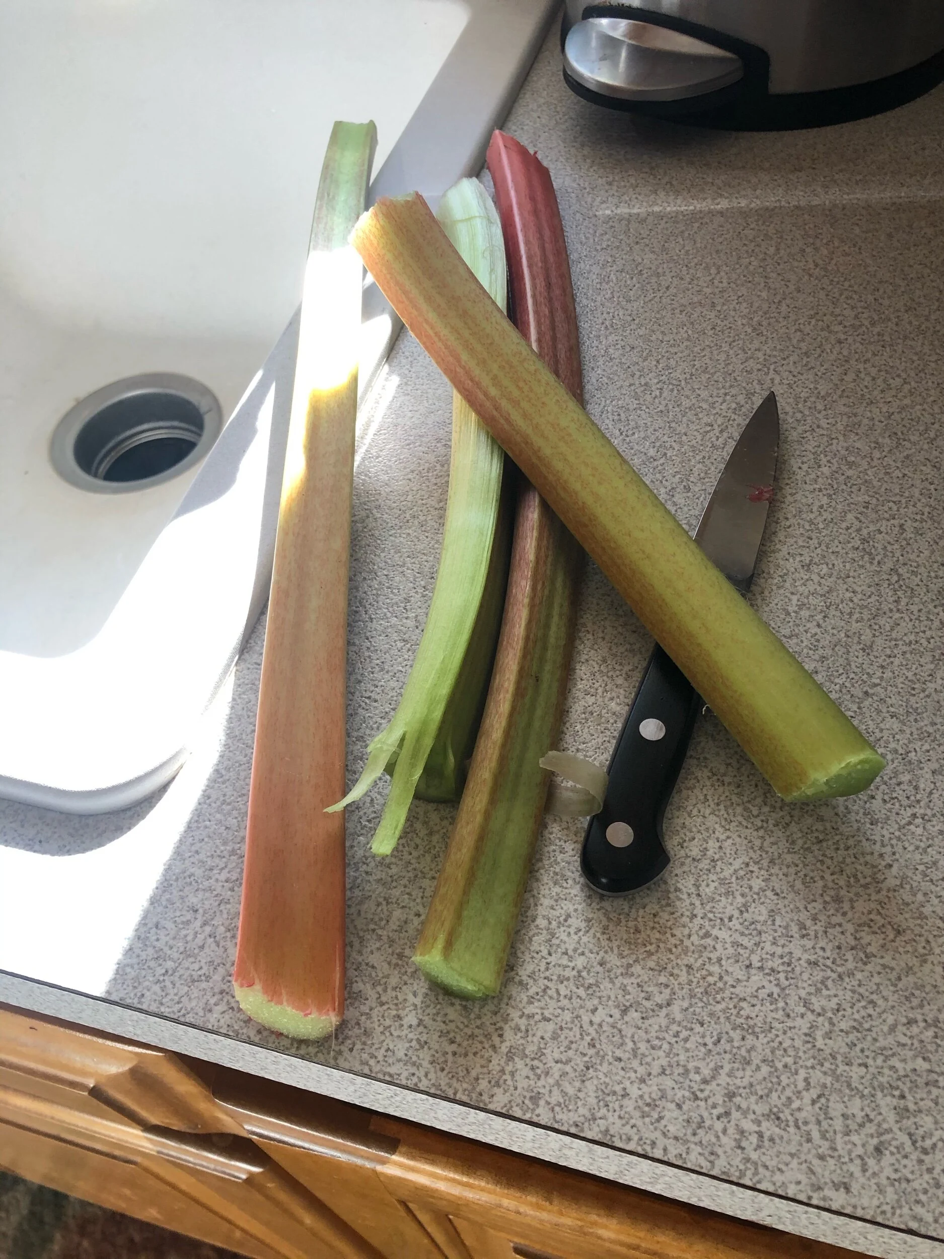 Rhubarb believes in the original instructions, and every spring offers its sour pungency and array of vitamins to the people, who in days gone by, after a long winter, desperately needed it. The people, in return, follow the instructions by helping rhubarb find new places to live, and offering it fertilizer, and thanks.