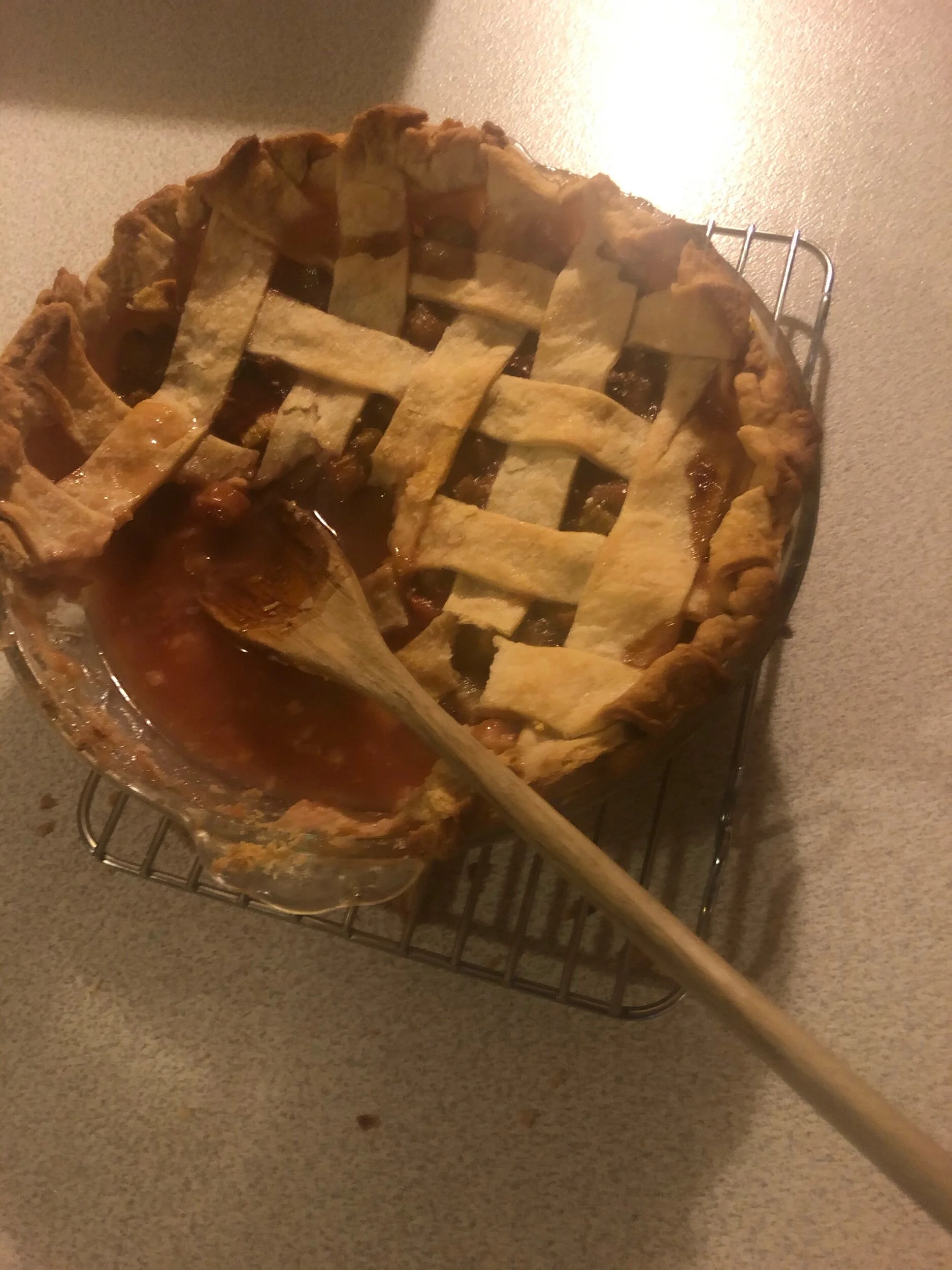 Rhubarb compote on genuine plain yoghurt also deserves a great many thanks. Photo of the pie to follow.