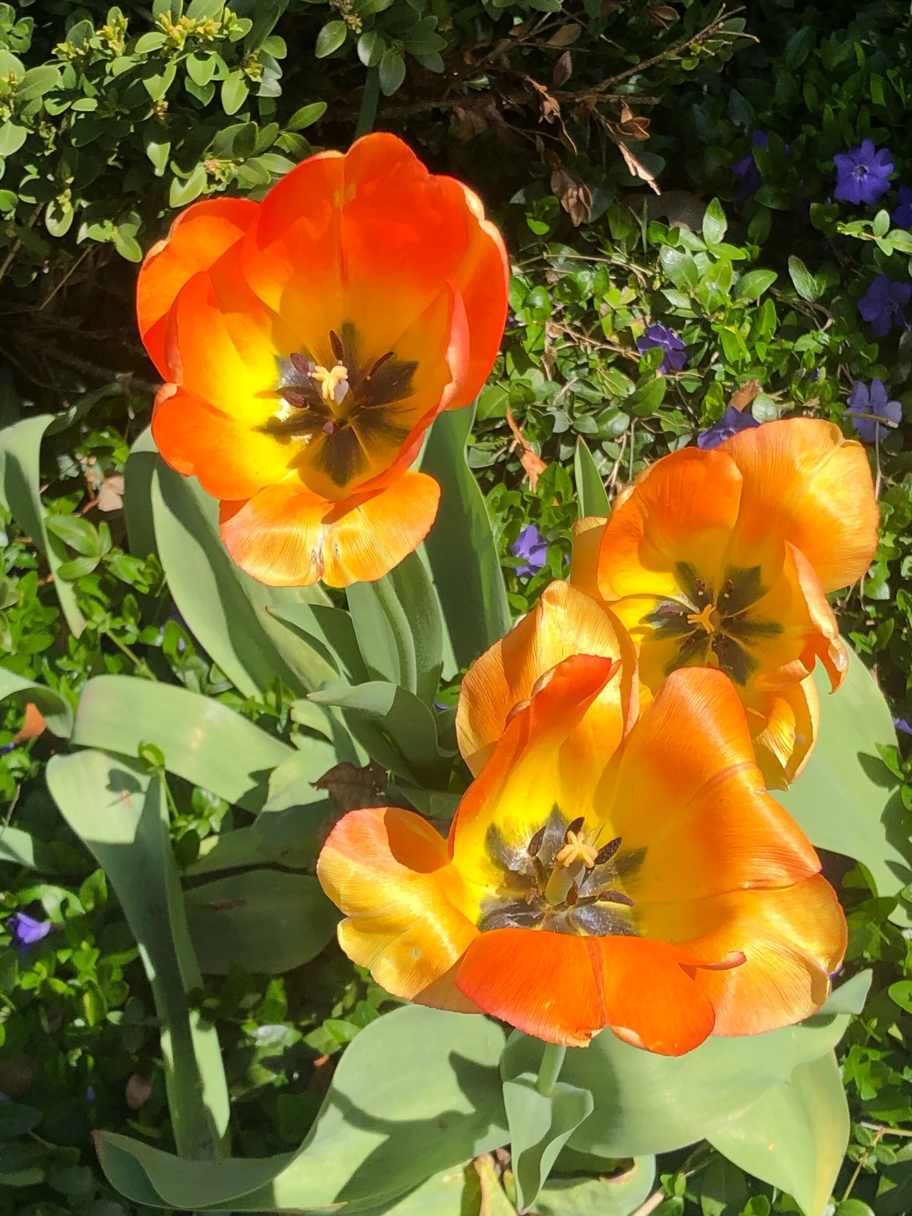 I don’t think things are so advanced that a frost will do harm. Serviceberry in full bloom, apple blossoms turning pink, redbud budding red, but pretty much everyone accustomed to May being variable. And, unlike a normal year, the rosemary bush, instead of being outside under the apple tree fending for itself, is still indoors being pampered.