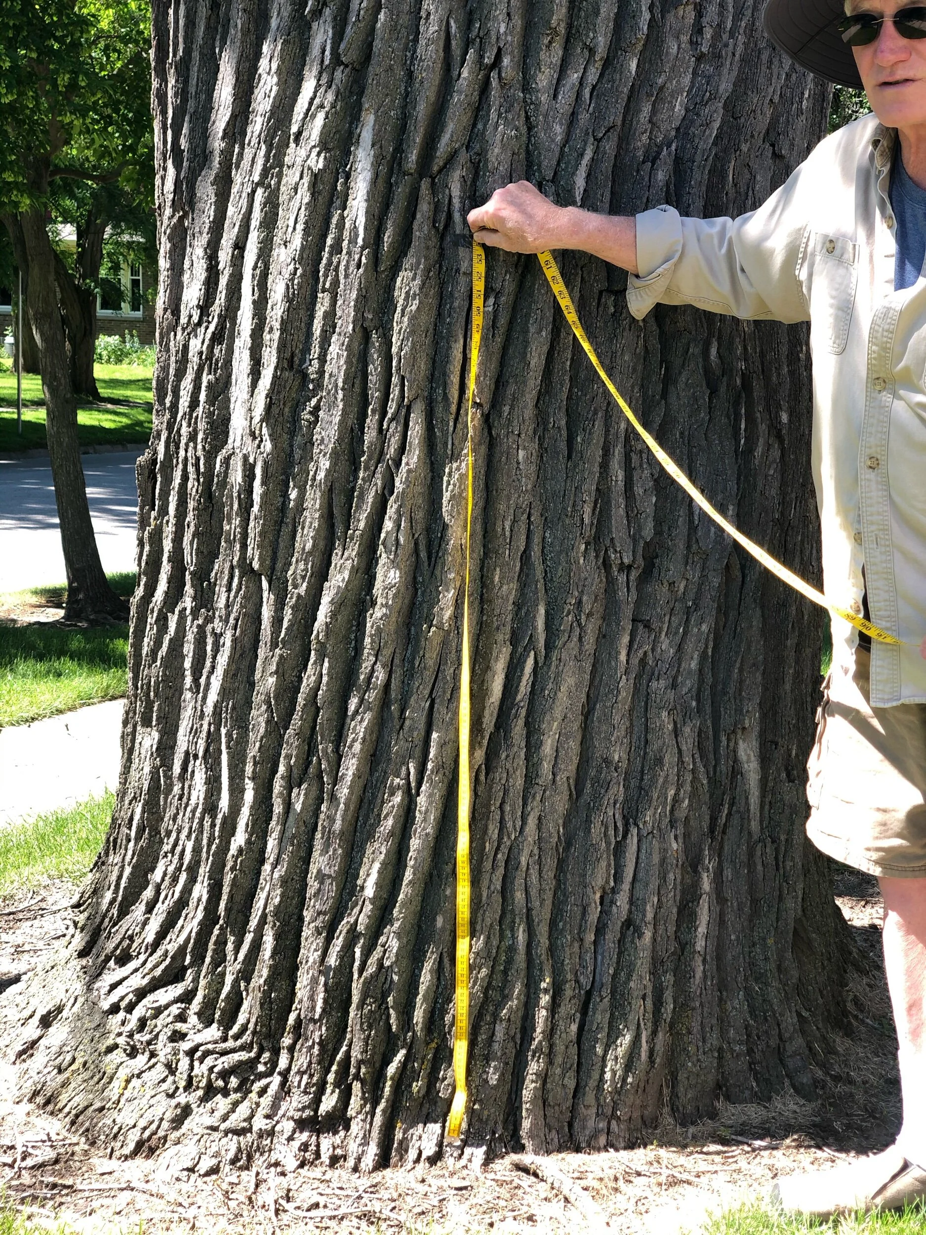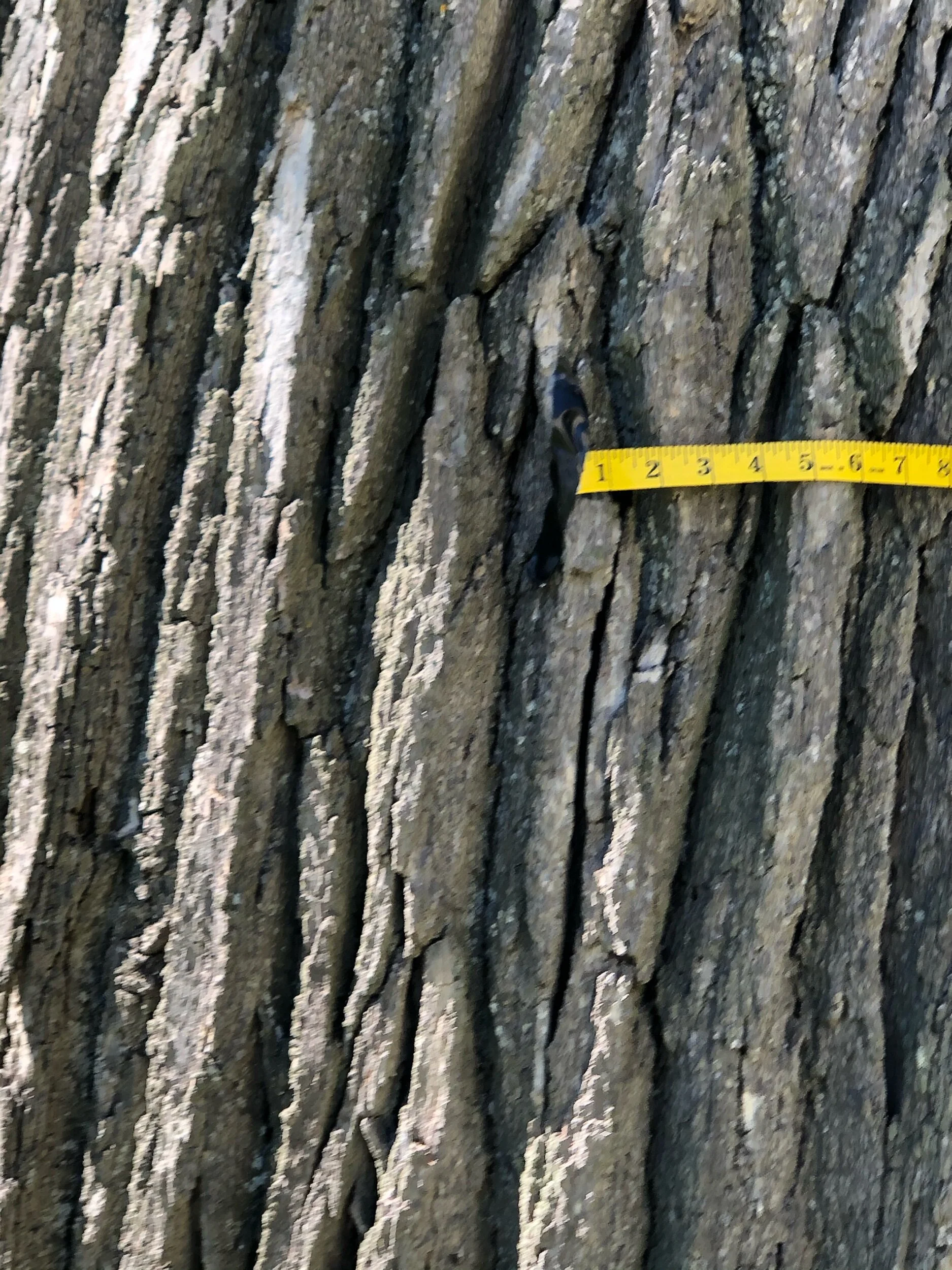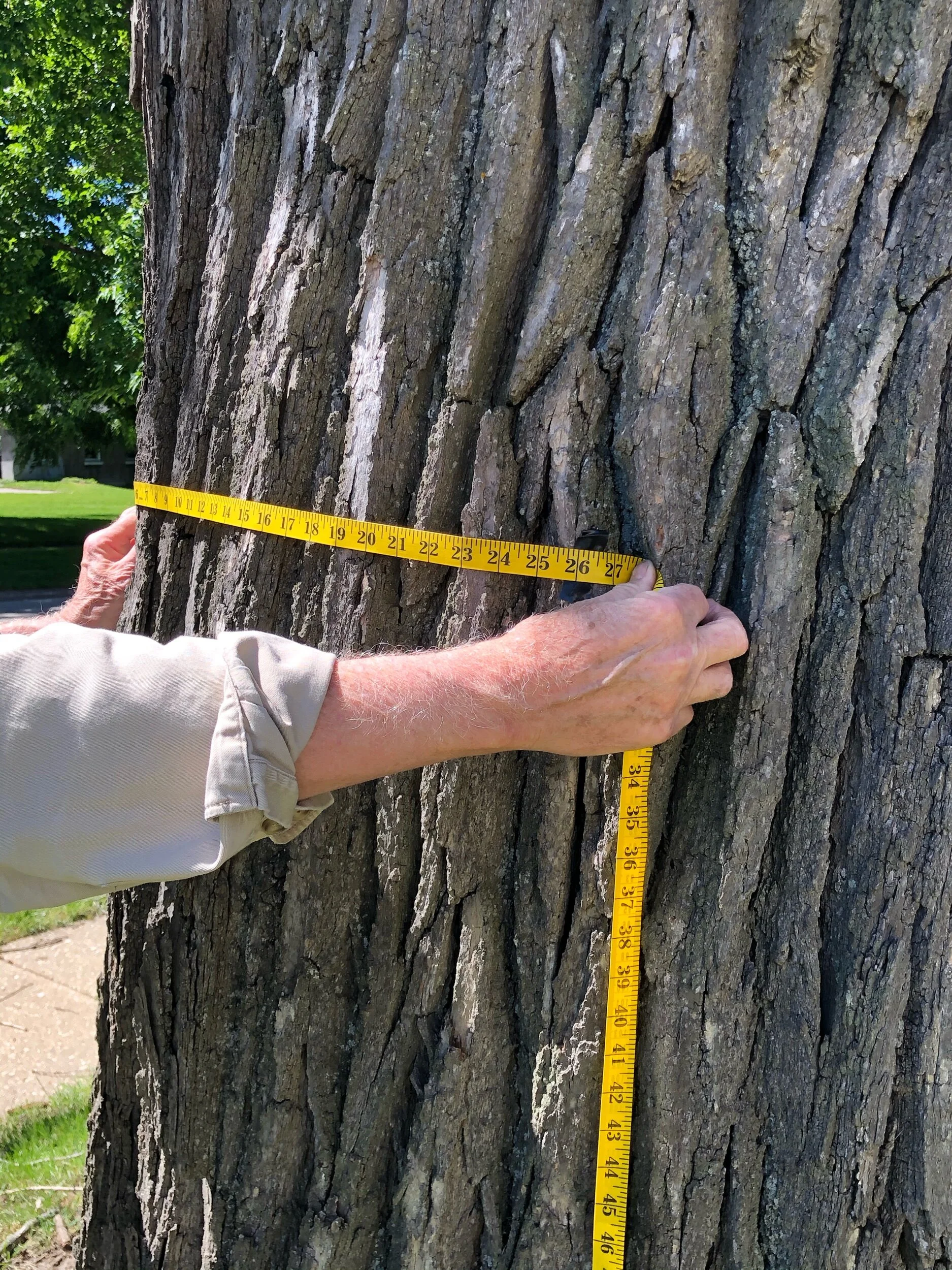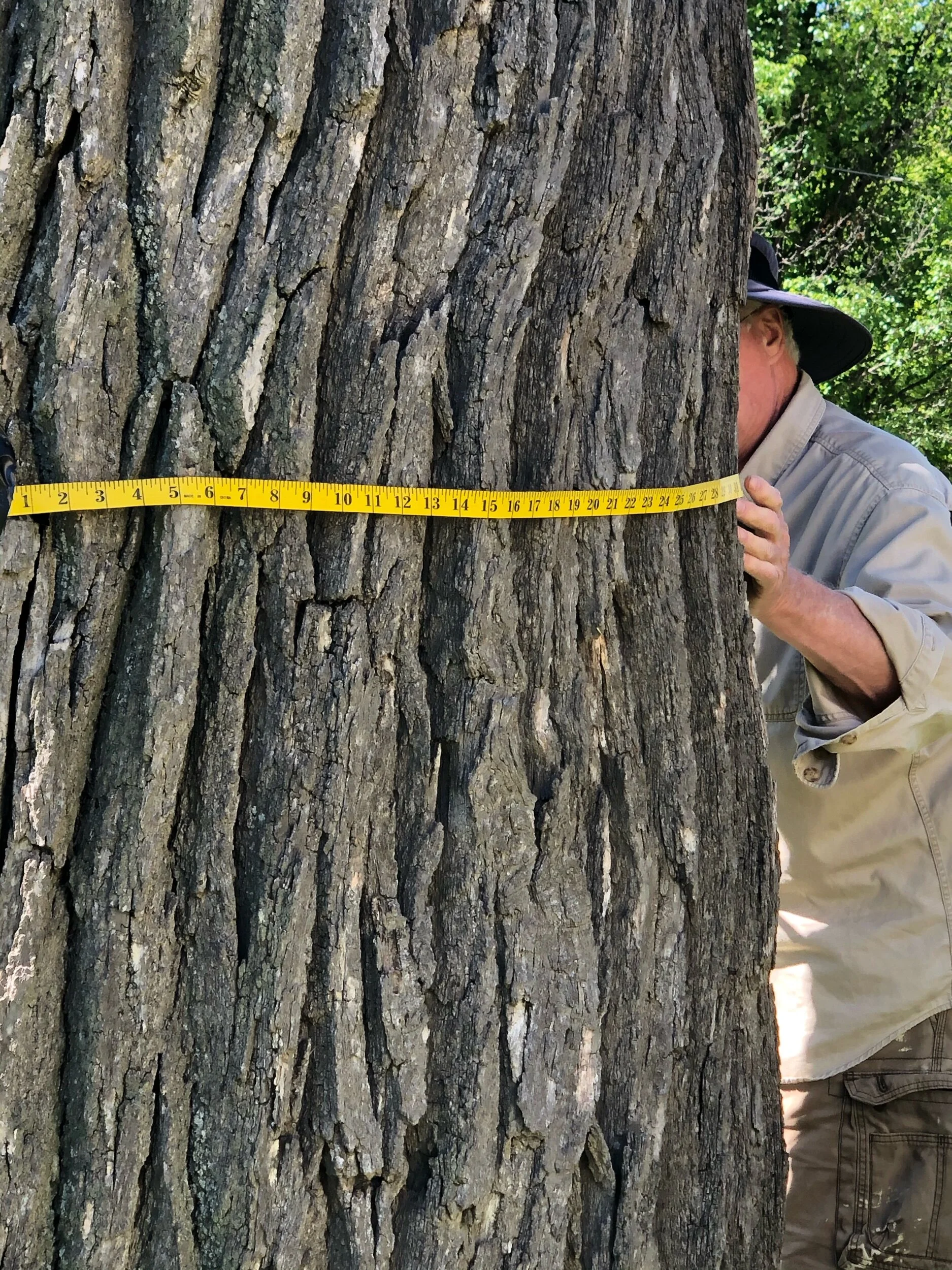 First, measure up four-and-a-half feet, which is where you measure DBH (Diameter at Breast Height).