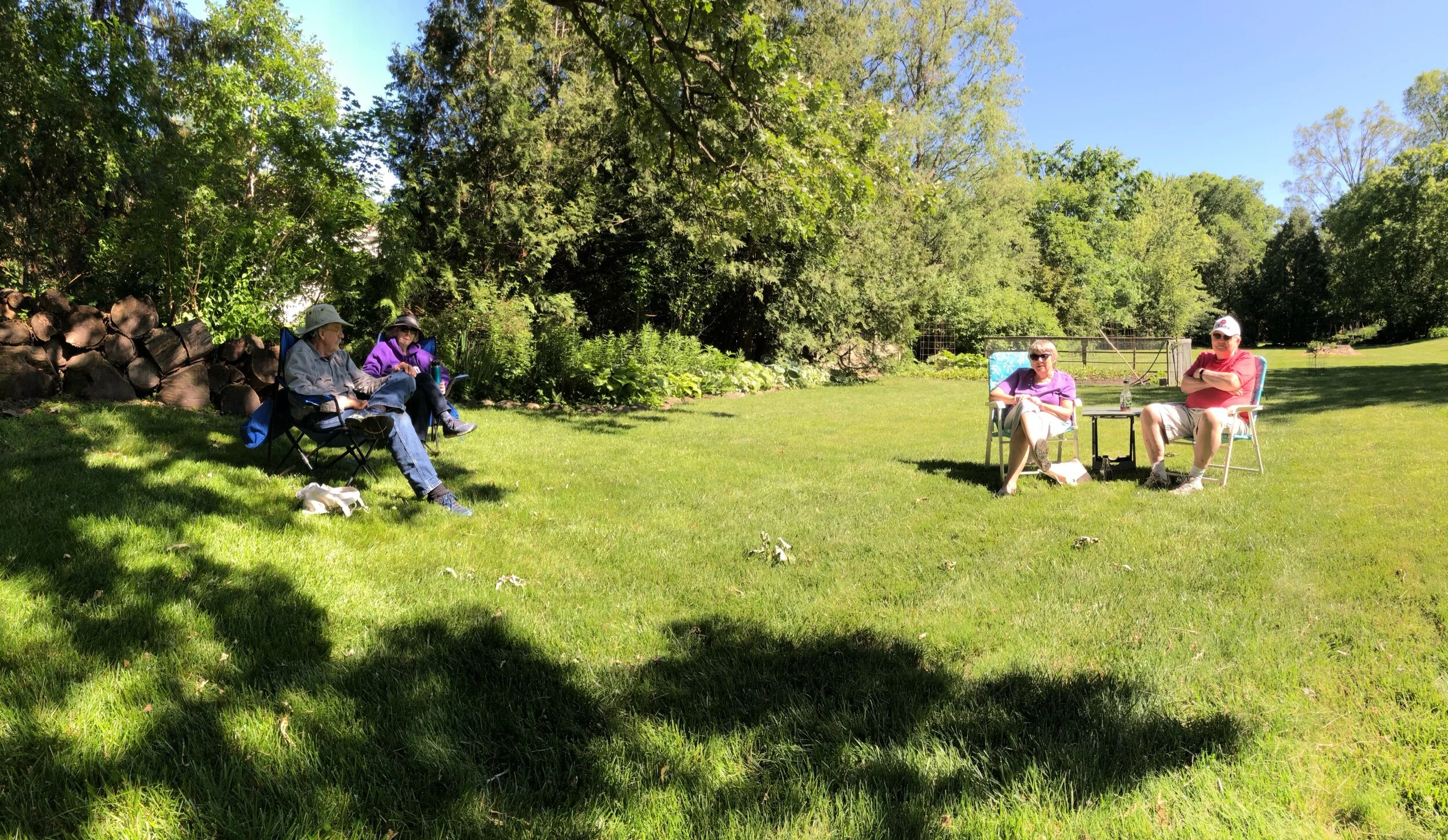 Neighbors over to the back yard, for several hour’s chat, well spaced out.