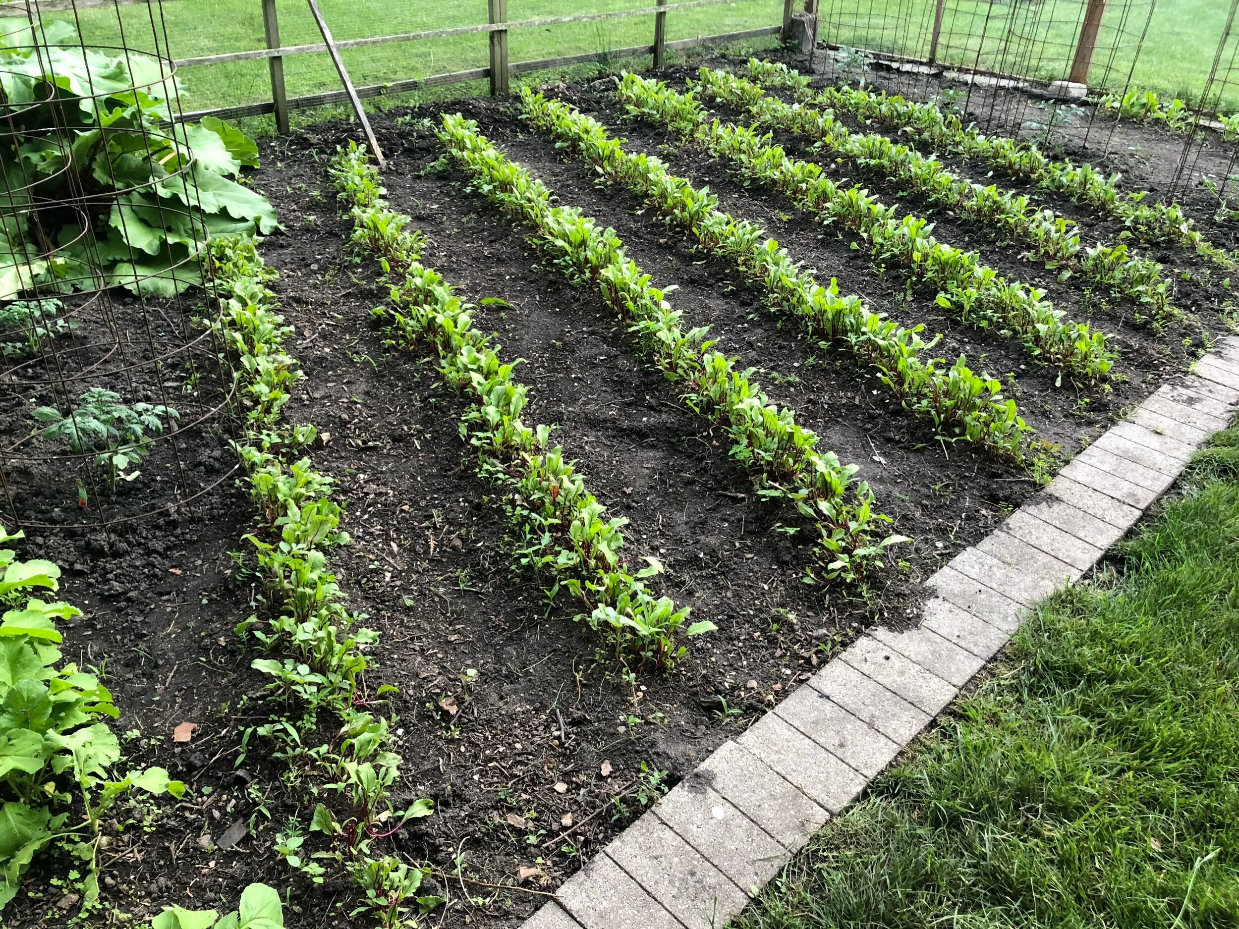 An hour every morning and the garden comes under control (after several weeks of neglect). Looks like the possibility of a good beet harvest. Also: first radishes ready, tomatoes in and enjoying the growing weather, two varieties of winter squash set to see daylight in a day or two.