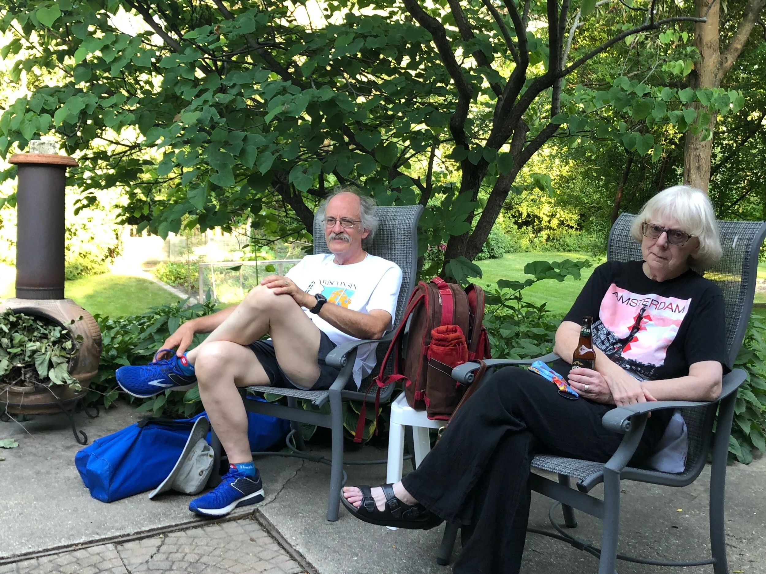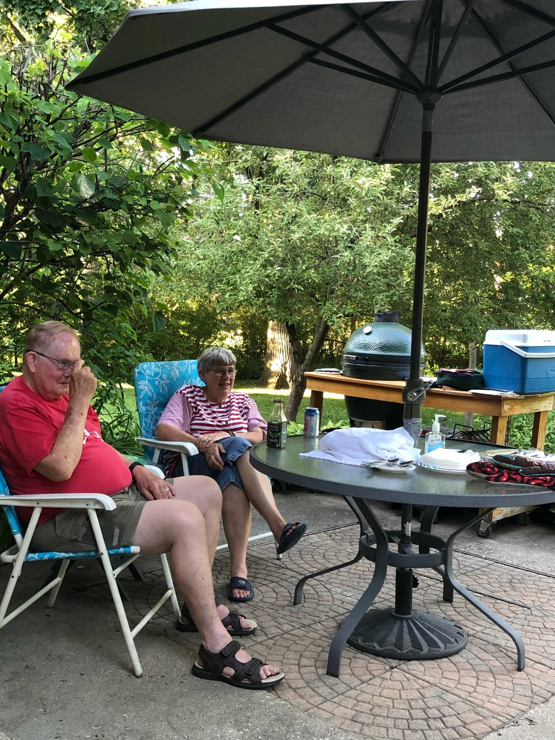 …a holiday spaced-out patio picnic with the neighbors, featuring Green Egg brisket and Sue’s world-famous potato salad.