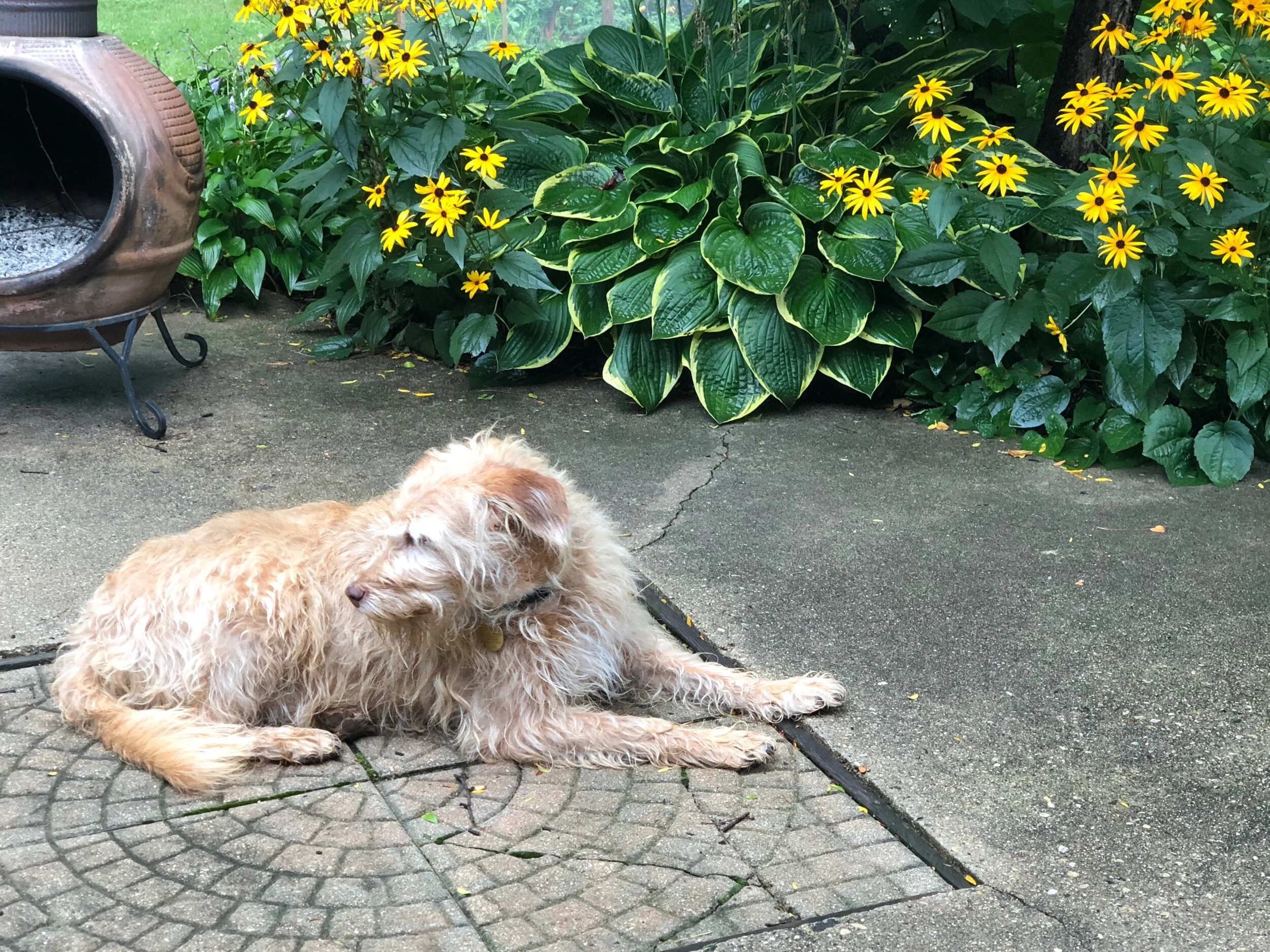 On our morning walk Pax and I visited an out-of-the-way spot of wildness on the edge of campus, between a cemetery and the utility plant. In what to me was waist high growth, Pax got on the scent of something and was off on the hunt—tail up, springing high and pouncing, just as quick and capable as ever.