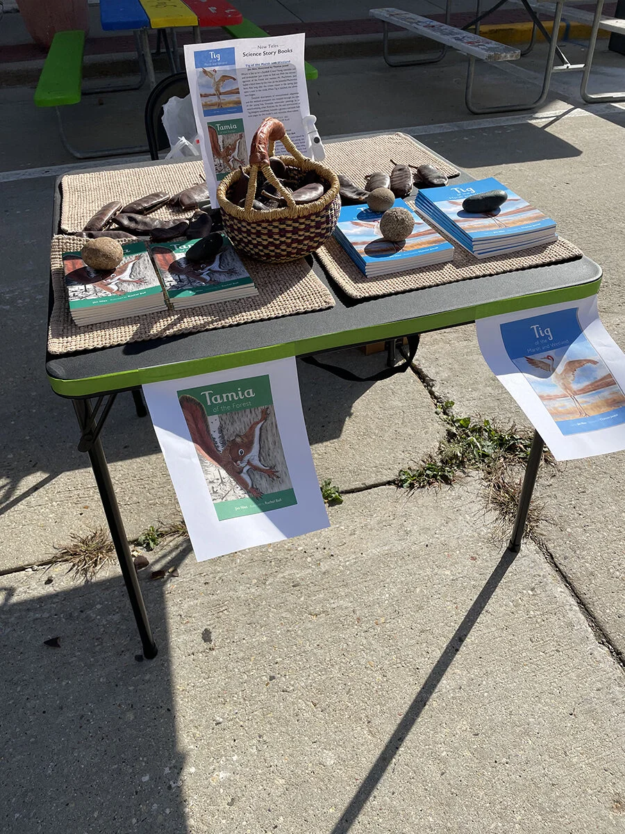 Here’s my table. (Thanks to Sue for helping me set it up.)
