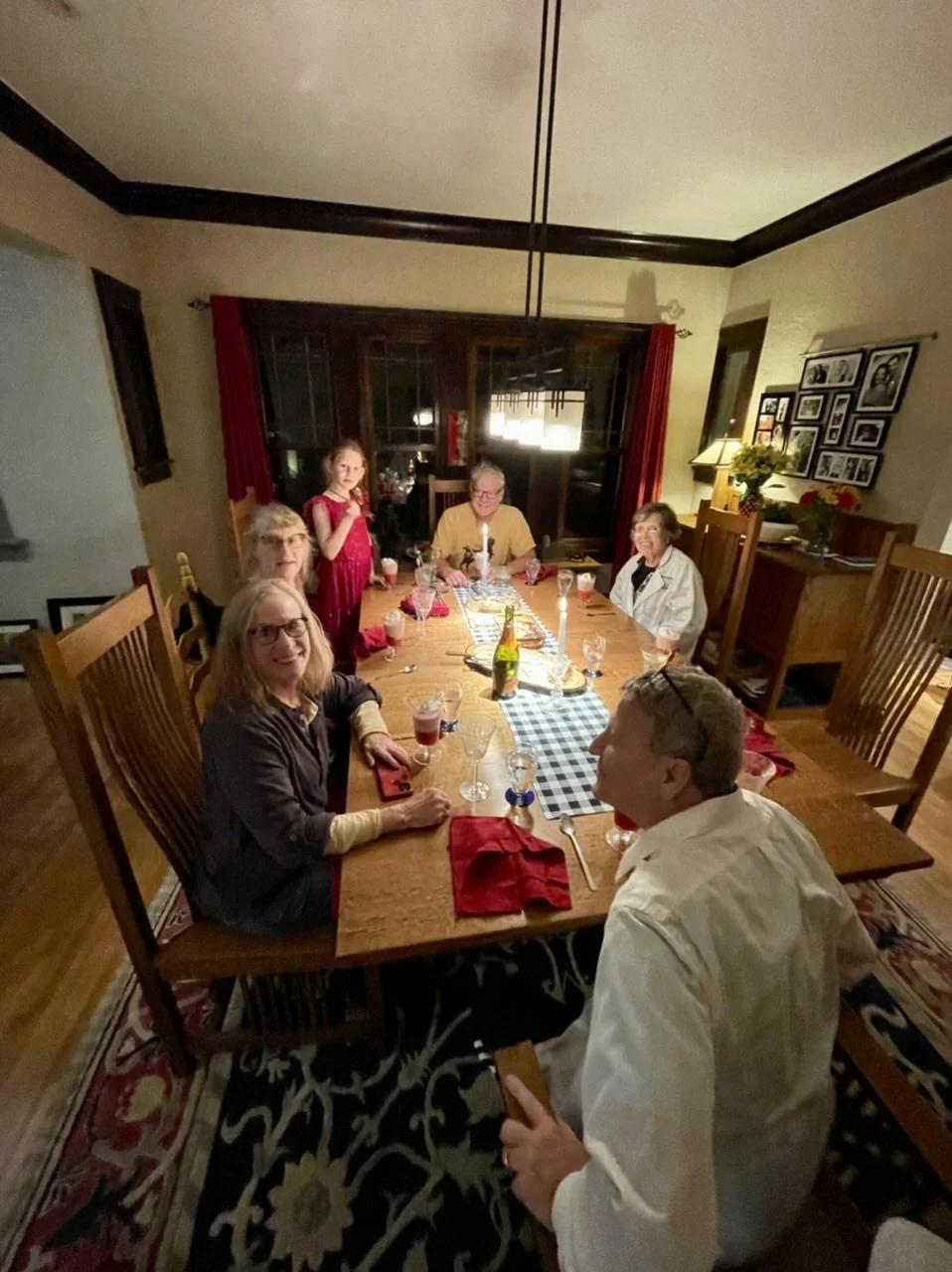 This year’s menu exceptionally tasty, and just the right amount. Conversation almost as good as the desert. Snowy drive home.