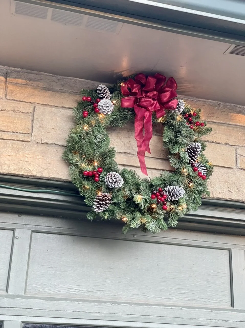 The day mostly devoted to holiday crafting, including the wreath above which Sue transformed from a dull green ring to a festive yuletide welcome, using things like home grown cones.