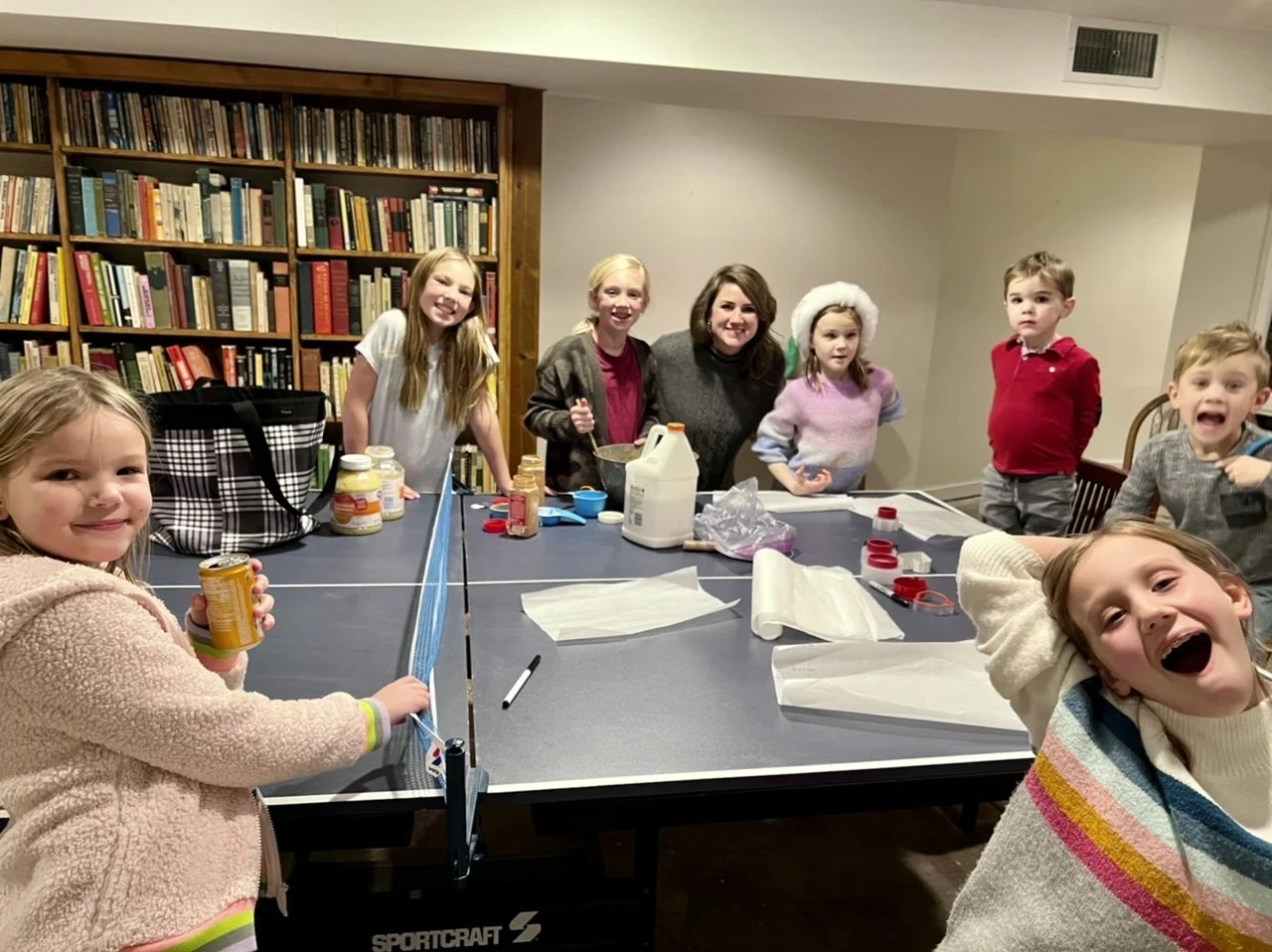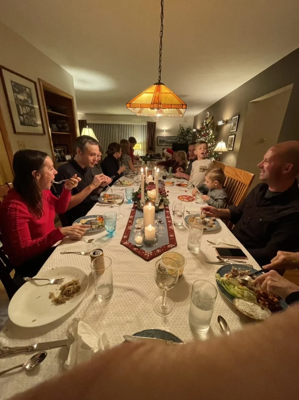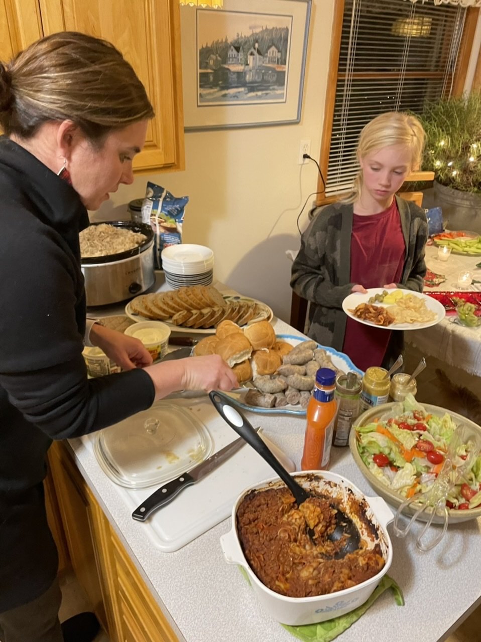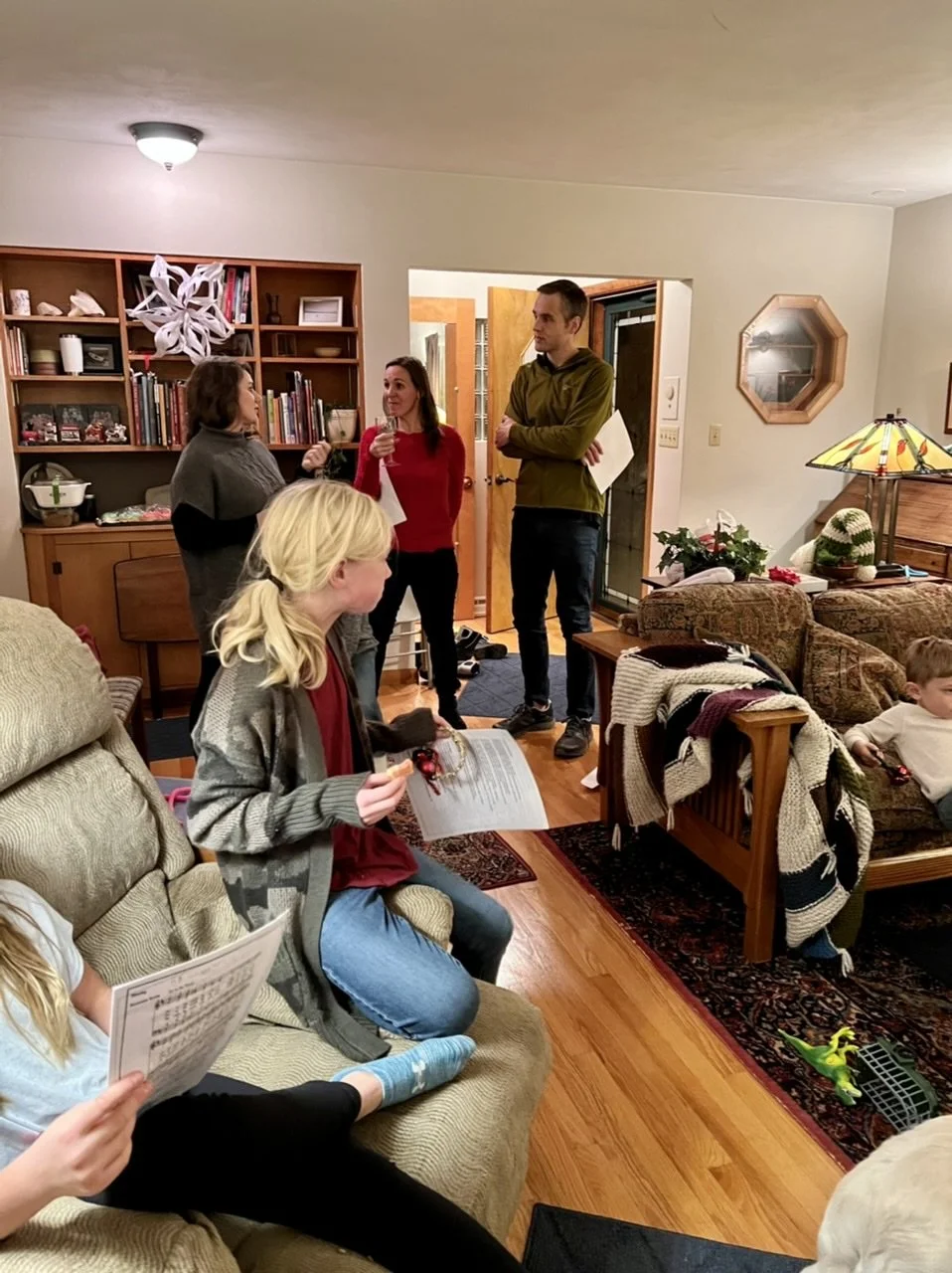 Twenty people: Sally, Glenn, Andy, Kristen, Louise, Sydney, Arthur, Abby, Tony, Katy, Will, Renee, Brian, Ellie, Maddie, Becca, Ben, James, Sue, and me; not to mention Buddy, Pip, and Lucy.