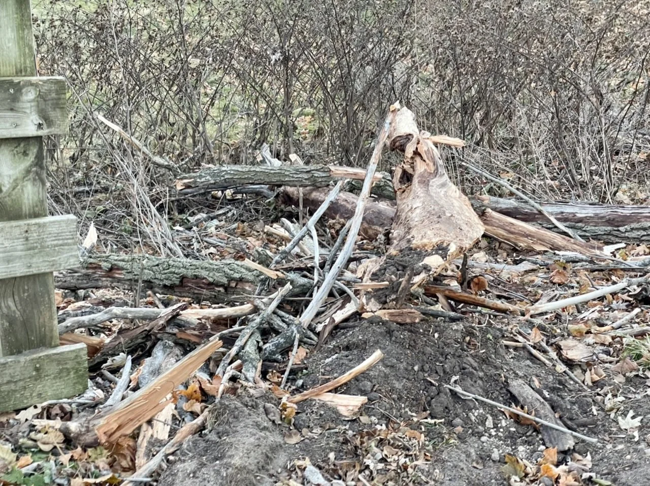 Meanwhile, another tree down, but in this case caused by a different agent.