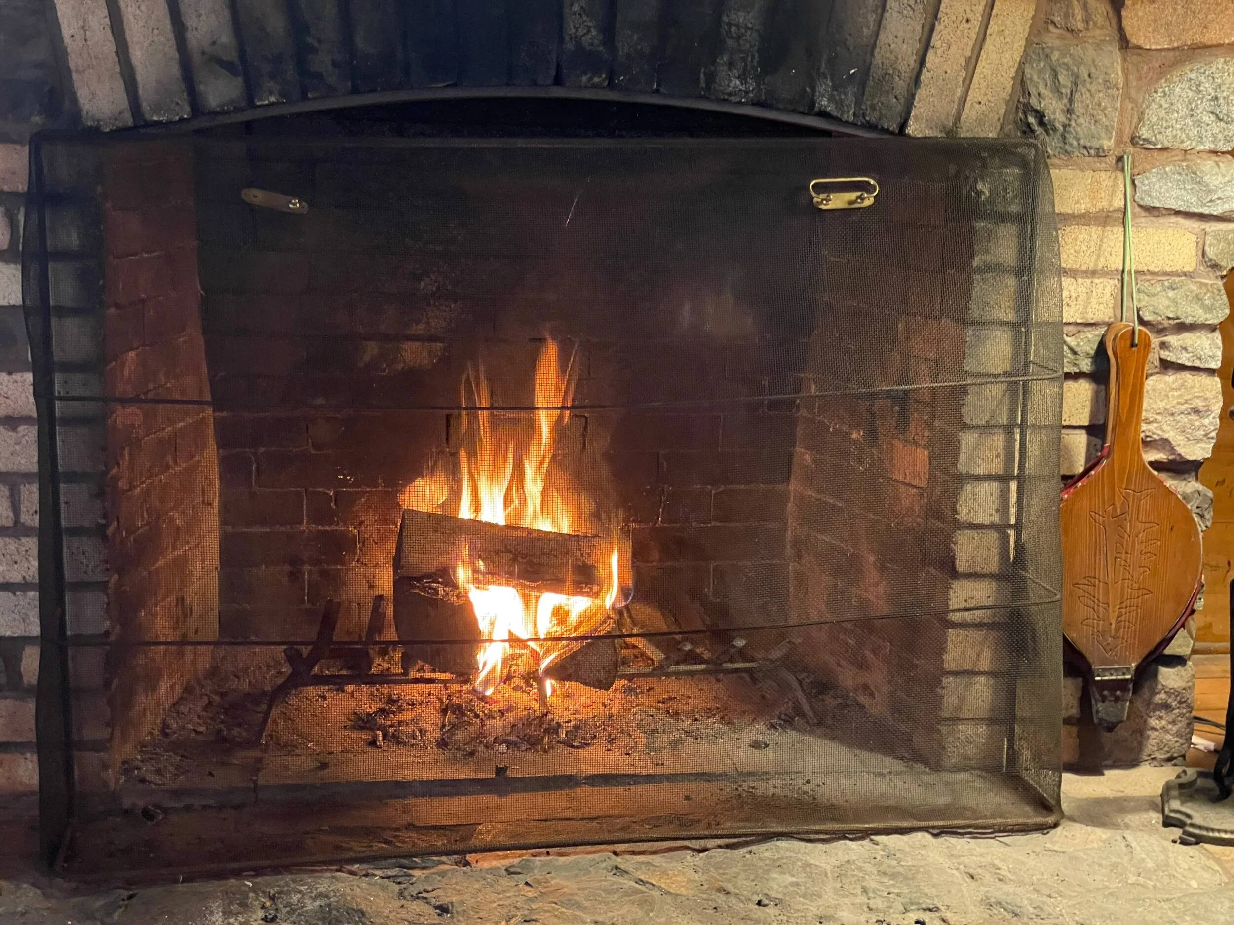 And this evening a couple of pizzas from the Flame restaurant around the flame here in the cabin.