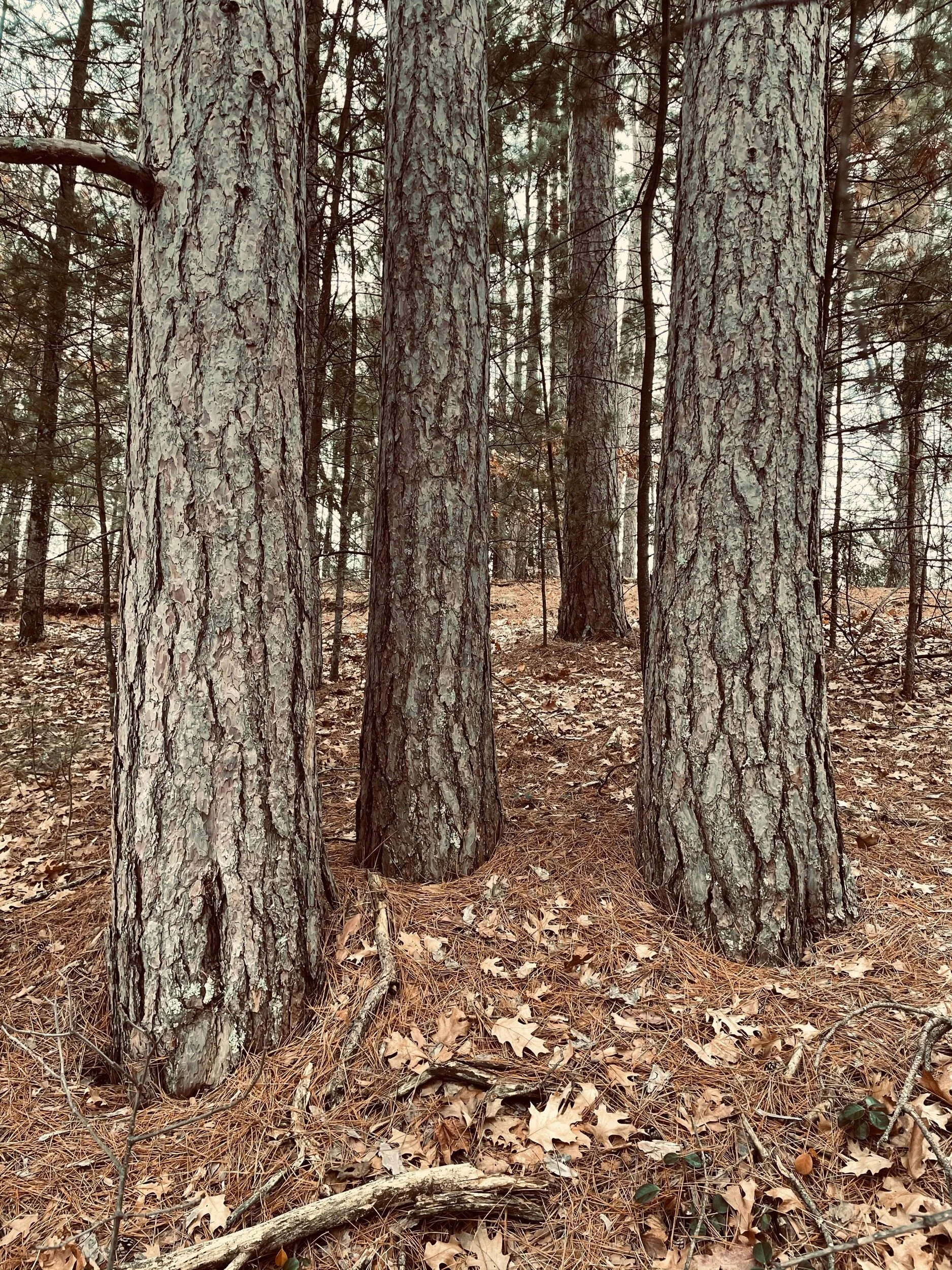 …as the giant white pine is affectionately known. And then, 3 big red pines proving that some trees enjoy close company.