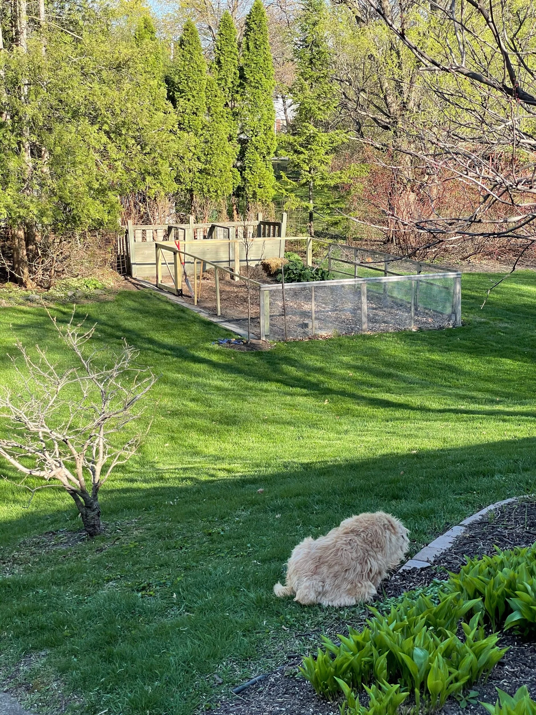 Perfect spring day. First cutting of the grass, or, as they say in the old country, first mowing of d’ lawn ( á la Unkie).