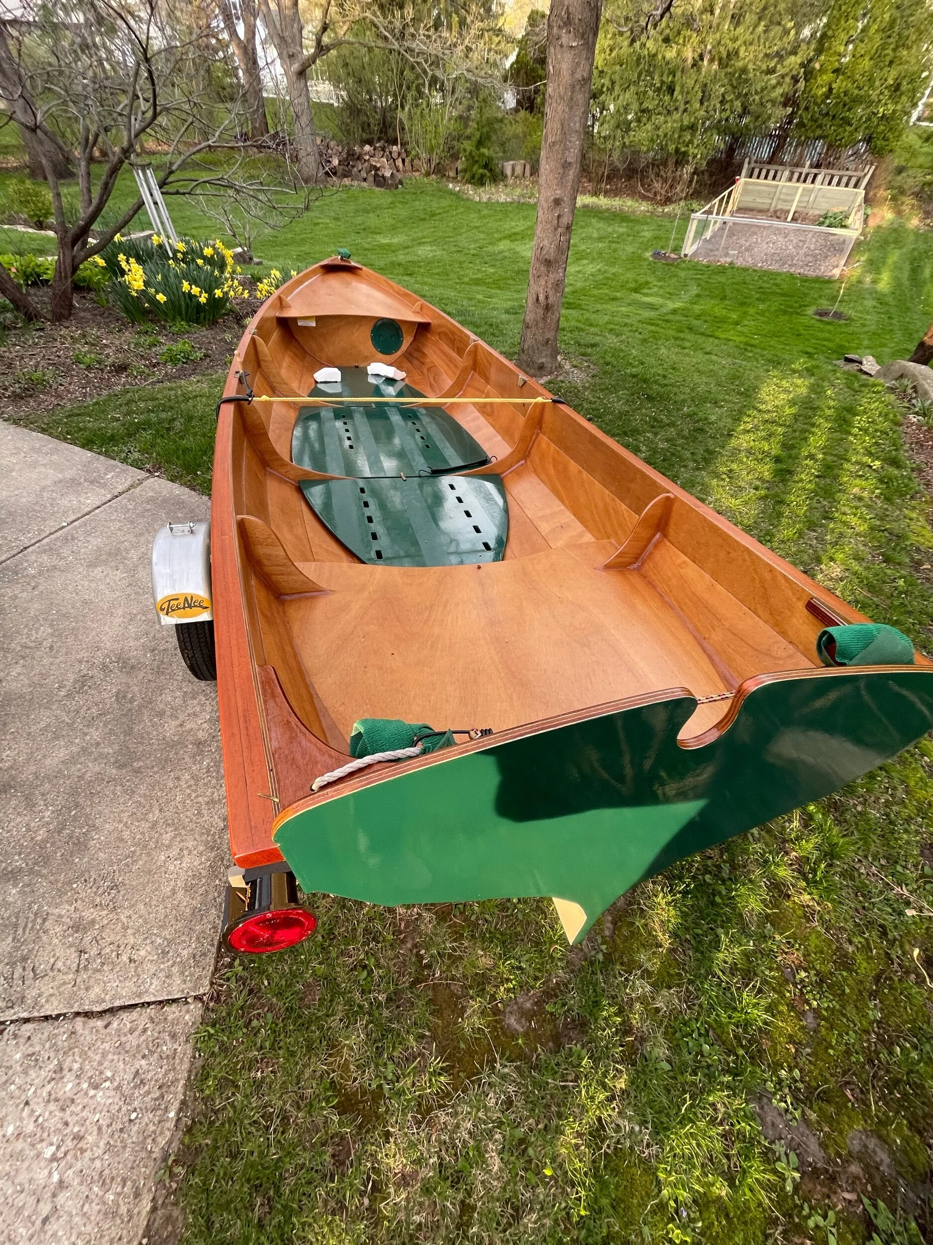 This one was built in Sheboygan by a retired doctor, a meticulous and painstaking craftsman, though not much of an outdoors person. Beautifully made, with several custom flourishes; a work of art, designed for water but almost never actually touching it.