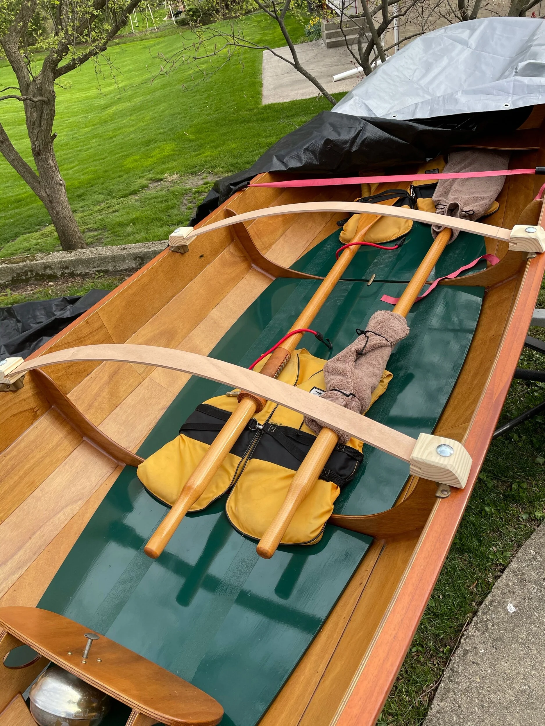 On the boat, that is. New trailer jack (that’s just common sense), incredibly engineered cover battens, and, custom designed and sewn protective oar bags.