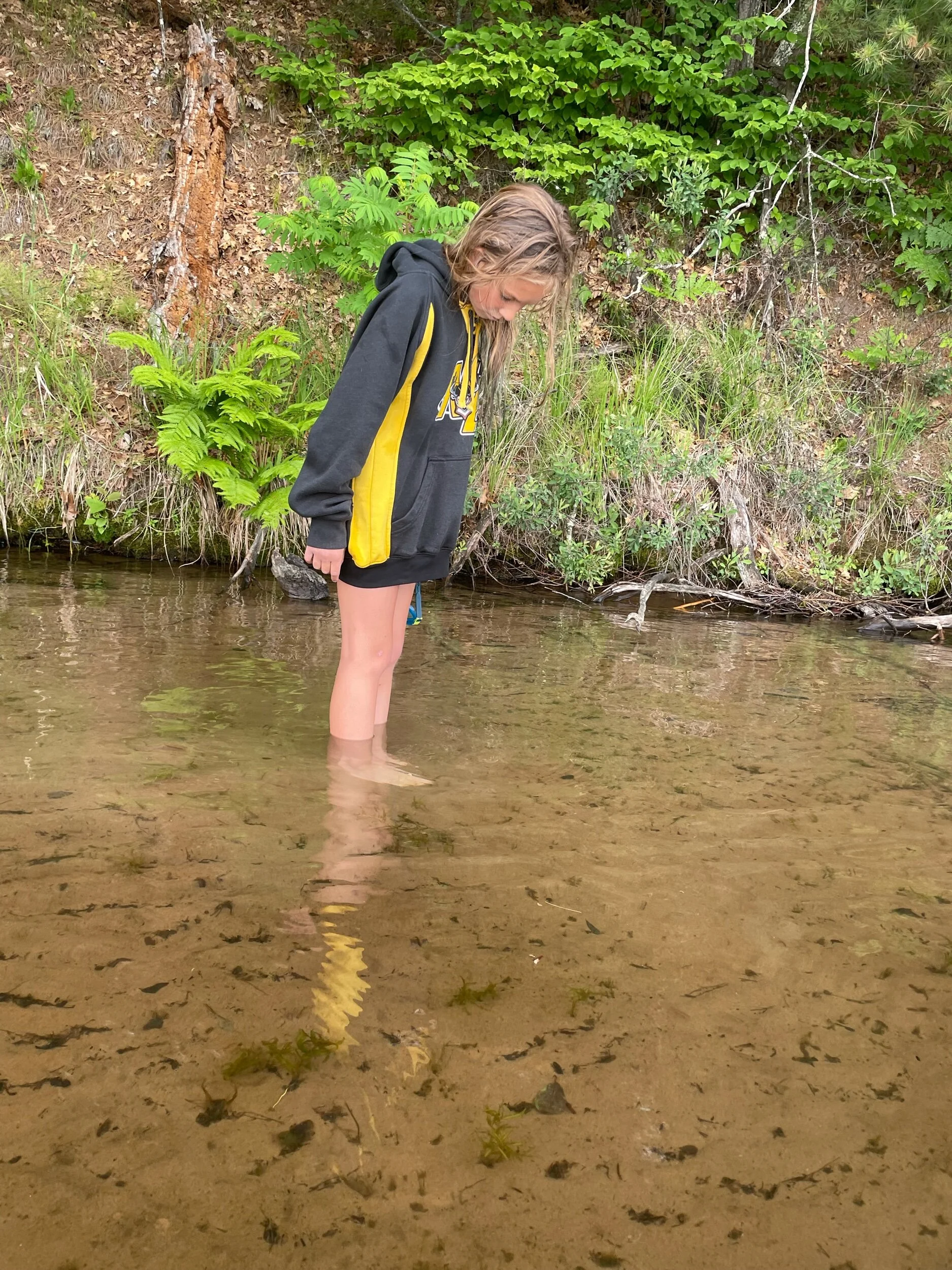 …after a little kayaking and swimming. Katy and Will found a tame fish in knee deep water which they named “Fishy Mac Fish Face” and Katy discovered a school of toe-nibbling minnows.