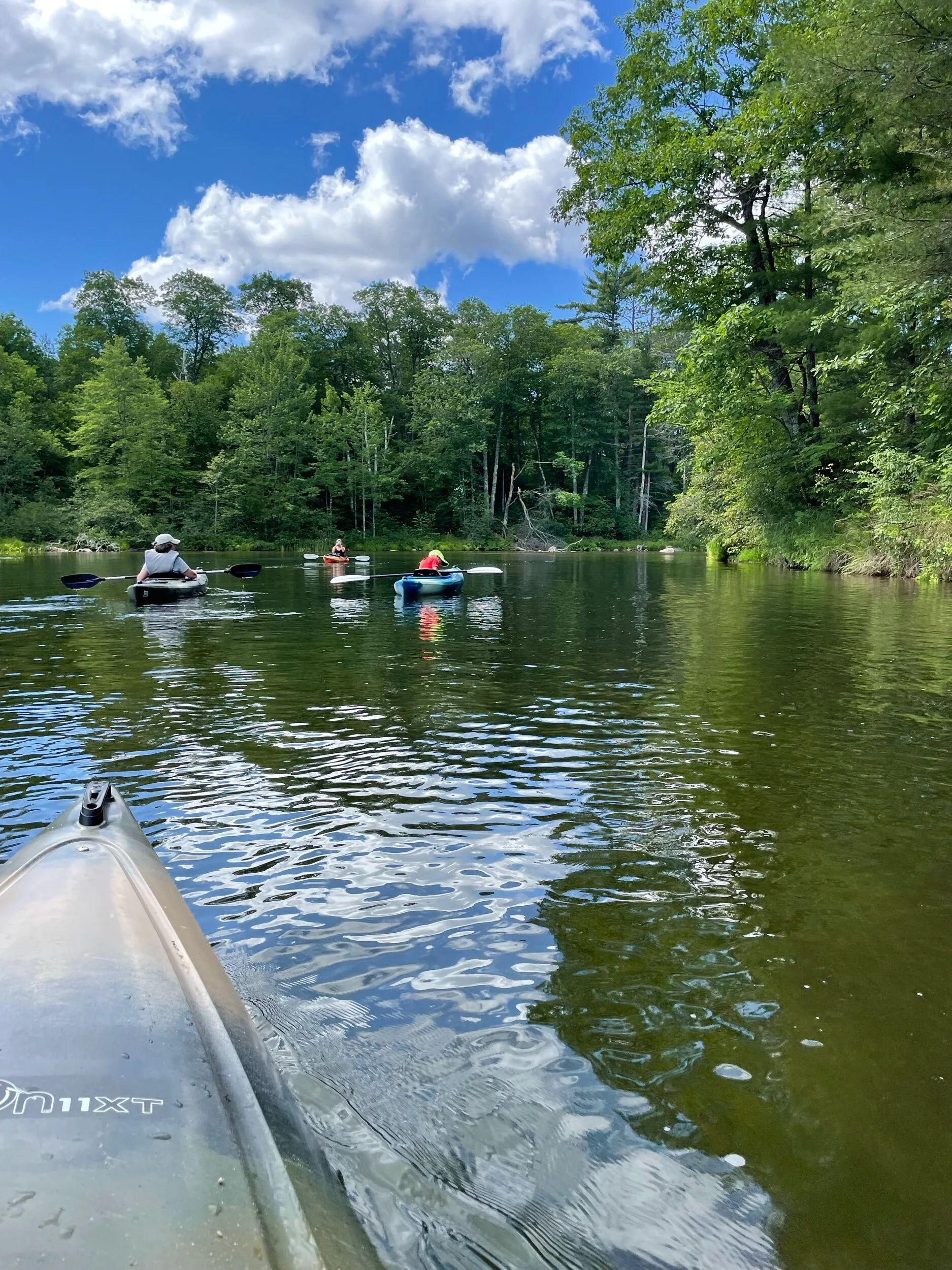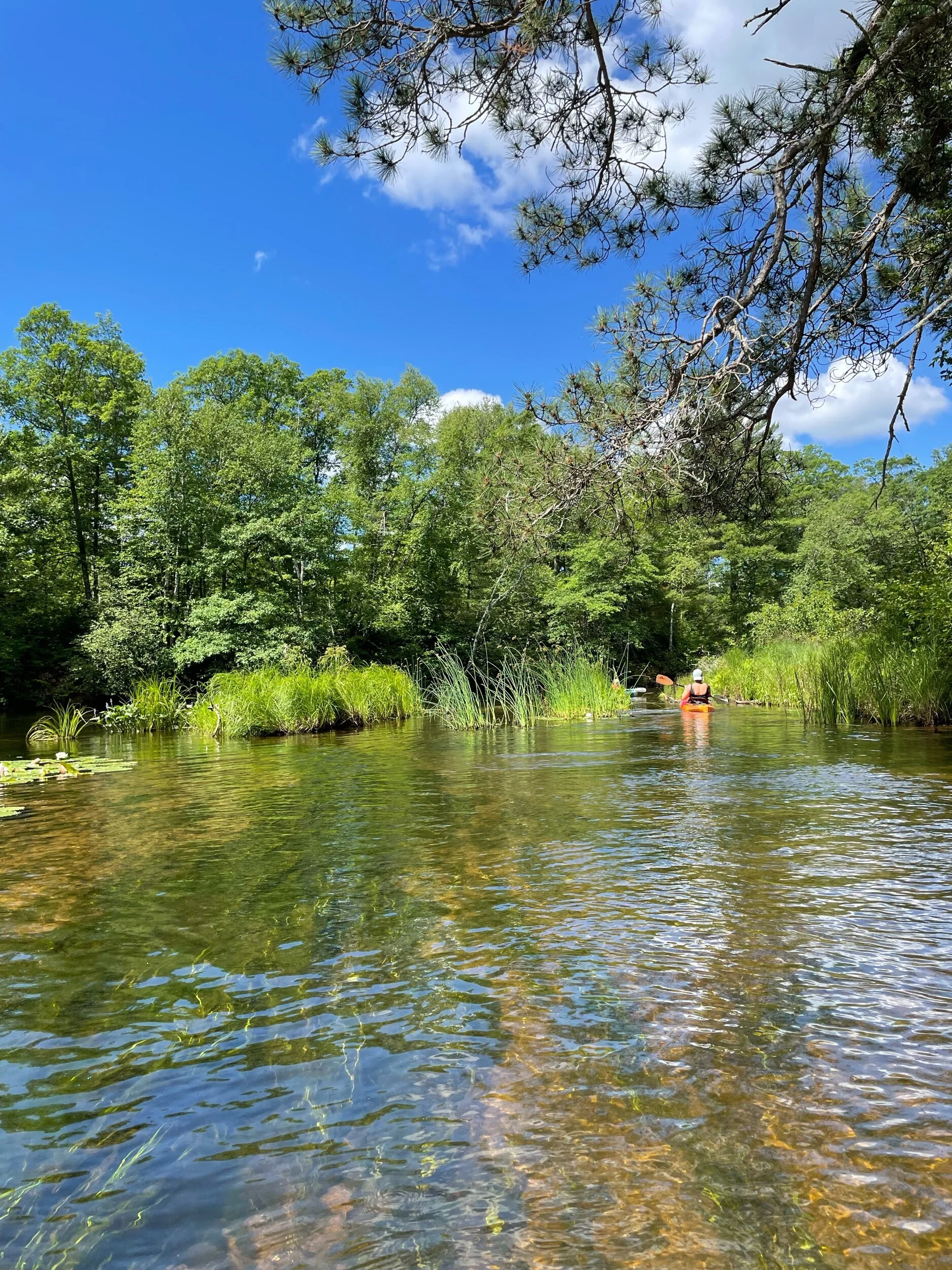 Going With The Flow July 15, 2021 by Jim Nies Kayak paddle down the Manitowish River—today’s main event—in a crowded field of action. Photo by Katy