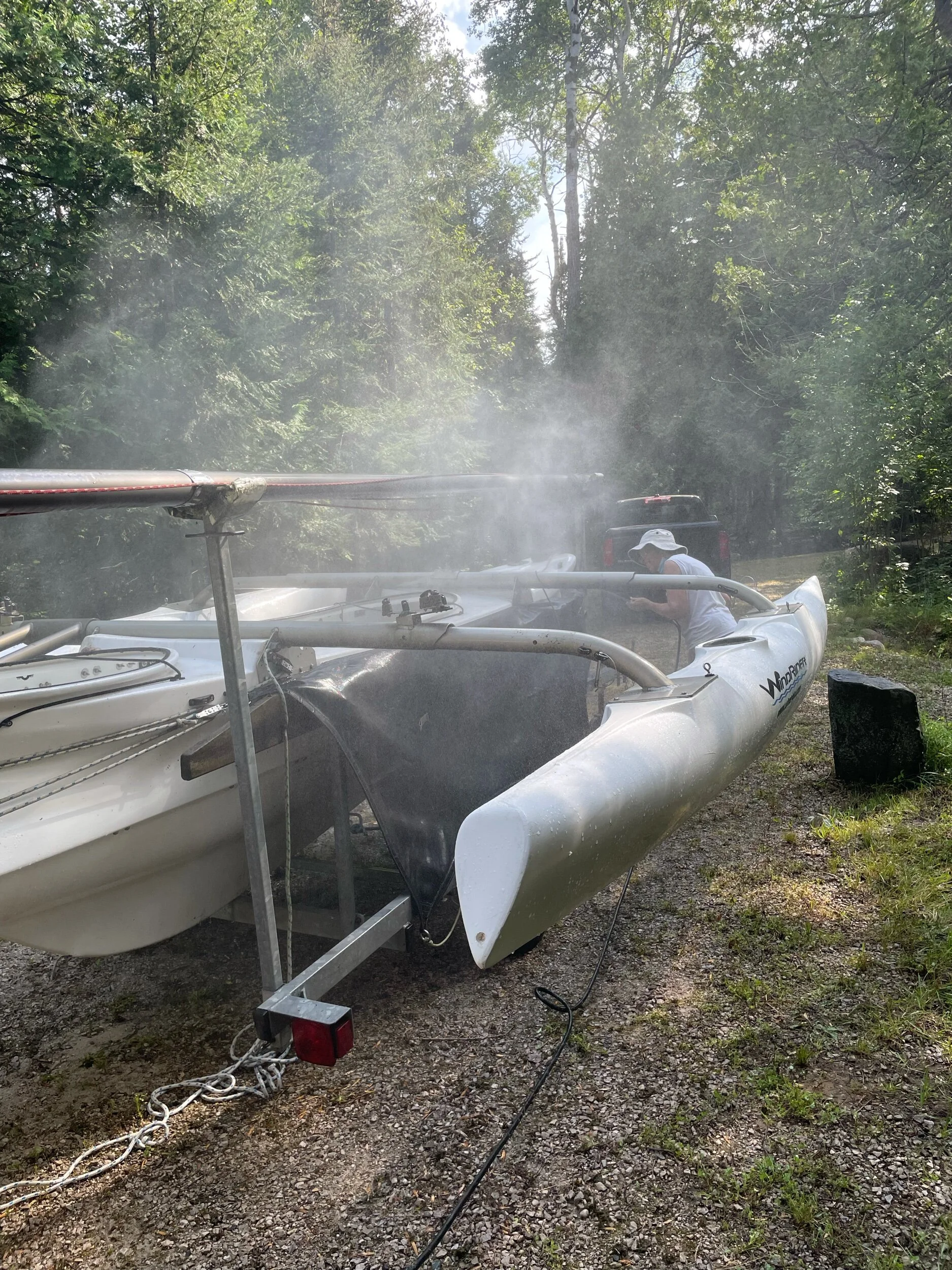 Today’s big project was the Windrider. After work (mostly Sue) we went for a water walk, which is what old people are supposed to do. From our truncated pier we head out to chest depth and then walk along the boulders over to Tyson’s, and then back home along the newly renovated trail. Beats power washing.