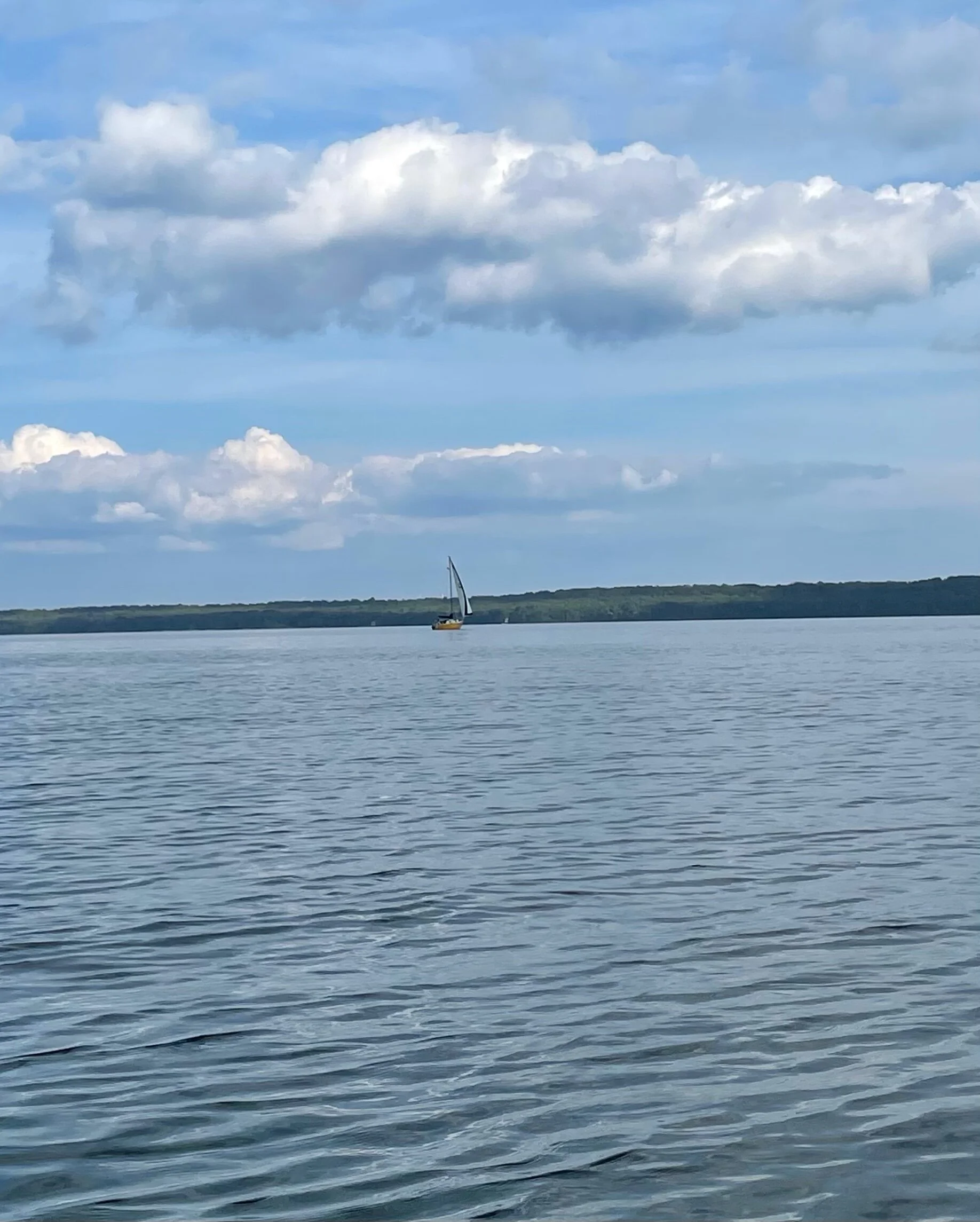 Sunny, hot, humid, and calm. As we were water walking we saw Lollipop out for a sail.