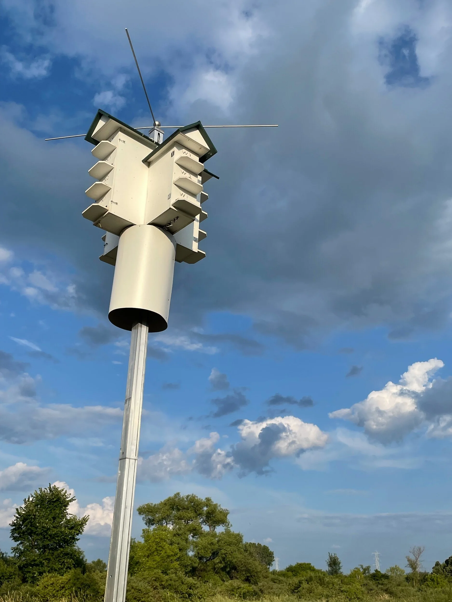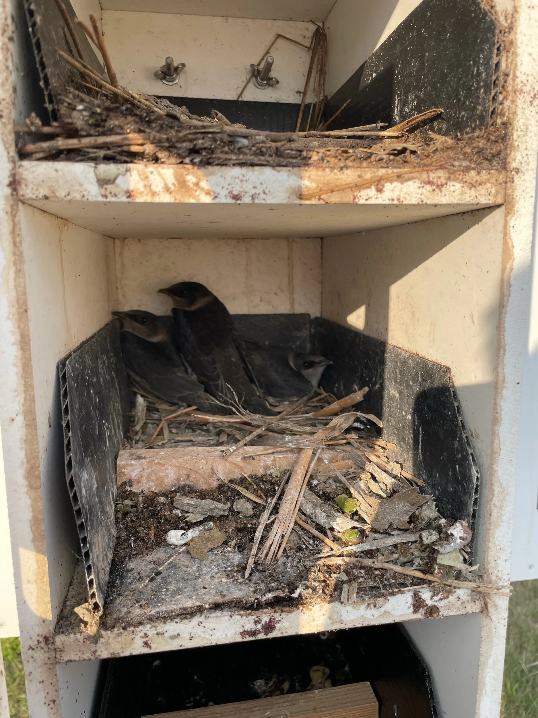 Photos above of a Purple Martin house which the Urban Forestry Commission has erected, and which is now housing the last three soon-to-be fledglings.