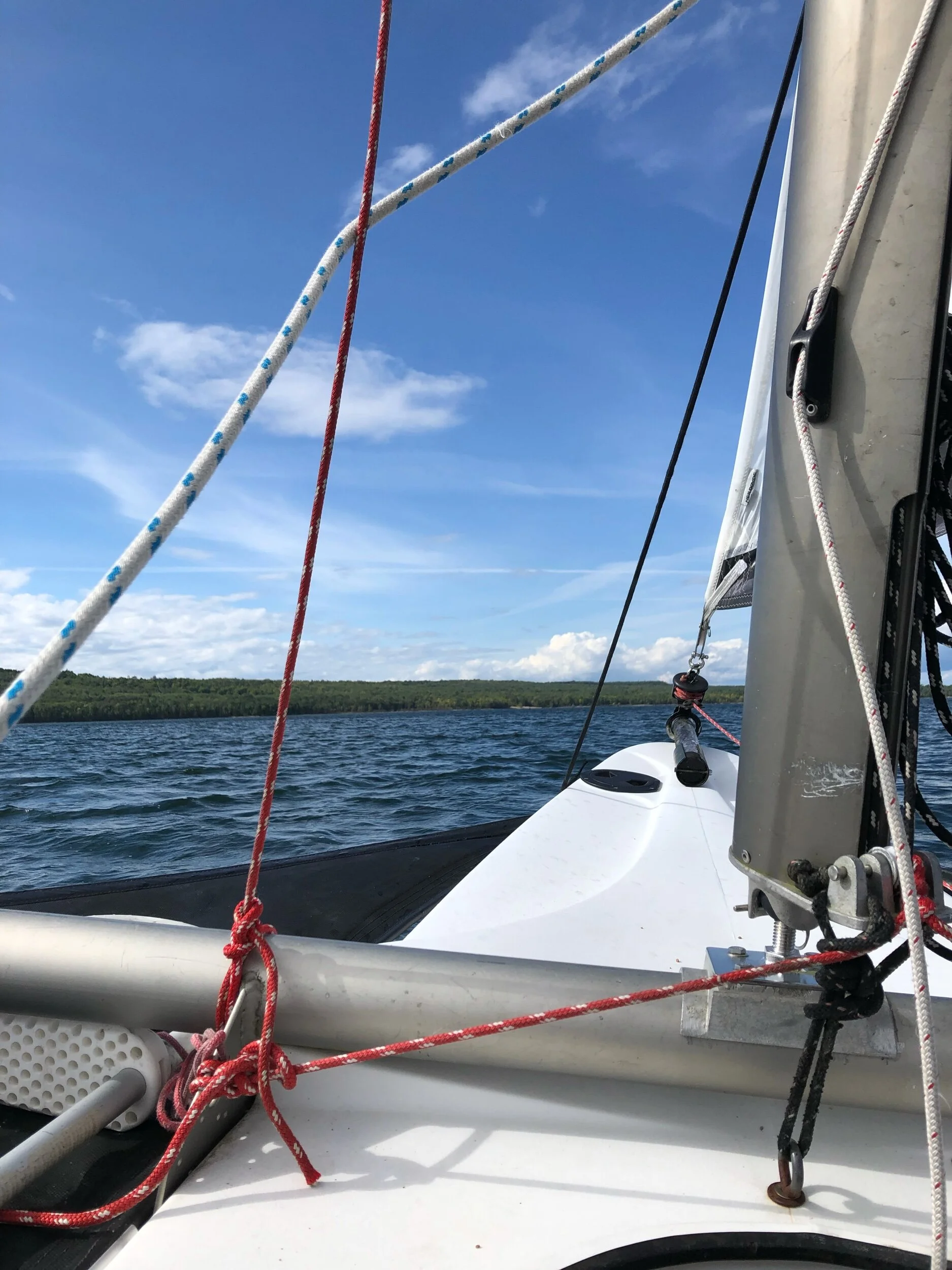 Perfect day for a Windride across the bay to about the midpoint of Maple Point, and back. Lively west wind on the outward leg, dropping and backing on the way home, but still nice.