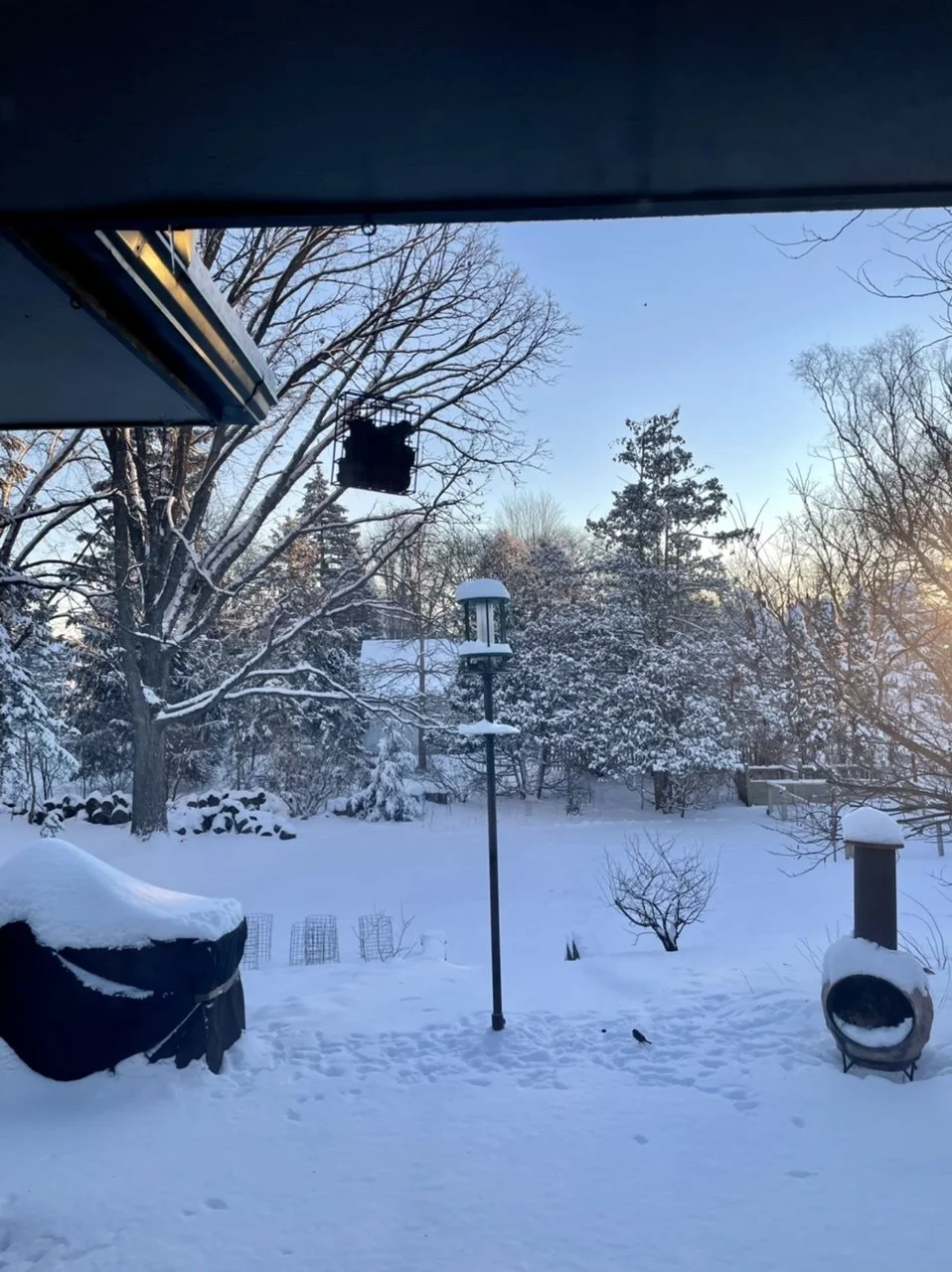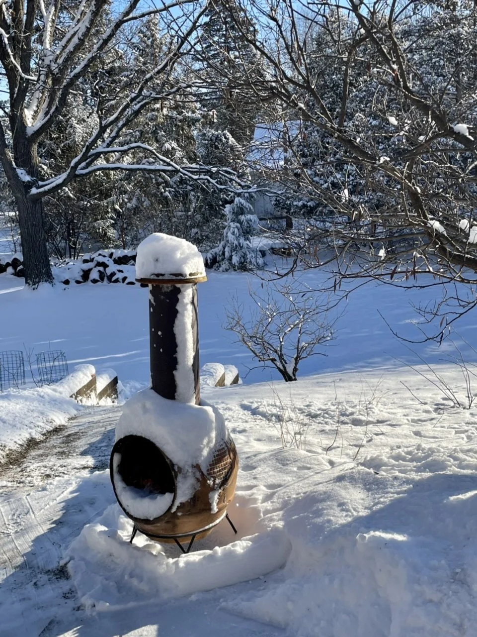 …and enough to require shoveling, or snow blowing. As is traditional in this neighborhood, nearly all the nearby neighbors out before nine, moving snow and hobnobbing.