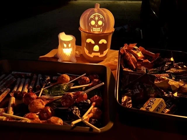 I’ve been inside (with the excuse of a bum leg) while quite a few Trick or Treaters have stopped by the display outside.