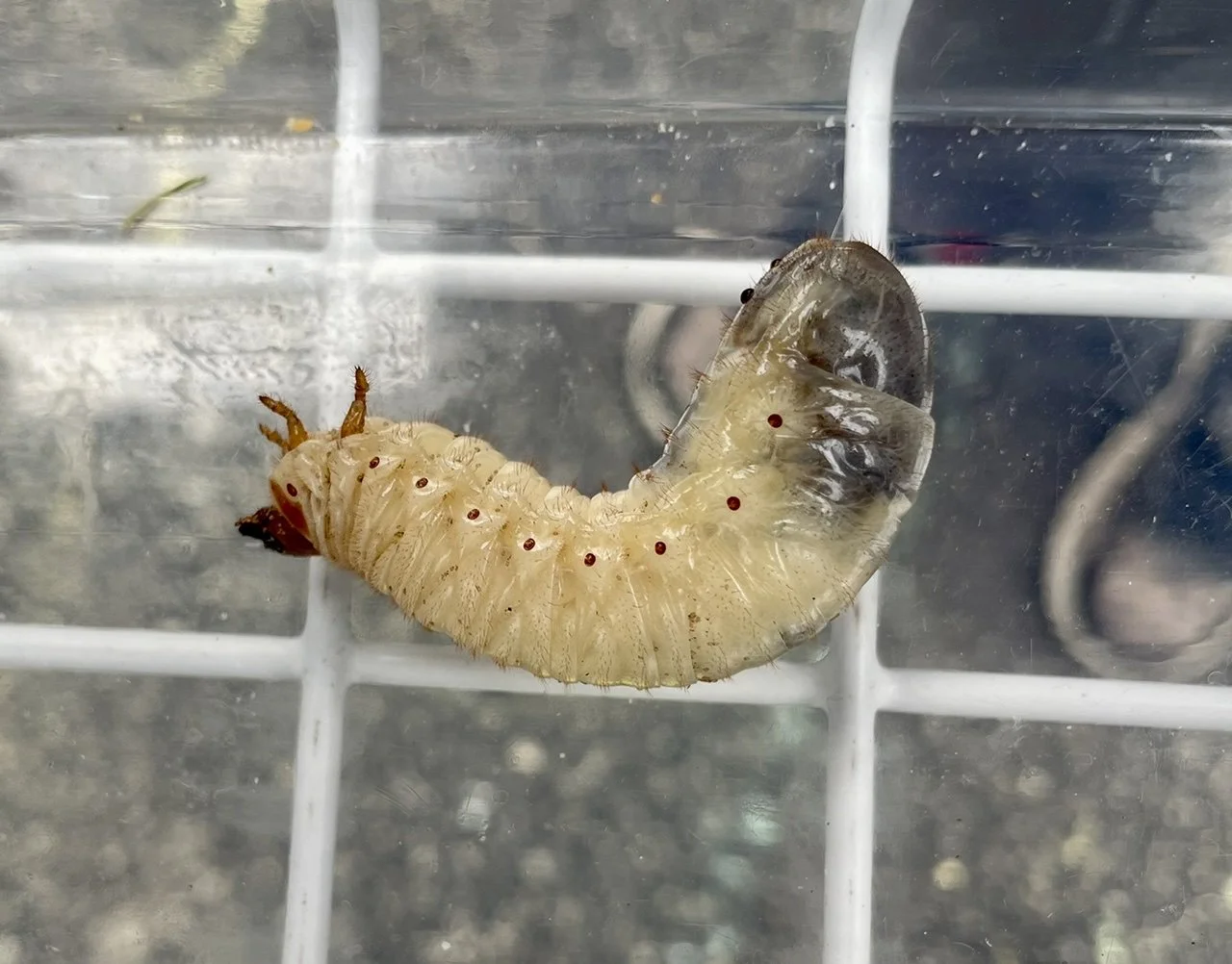 Here a hermit flower beetle grub found, along with many others, in a dead tree.