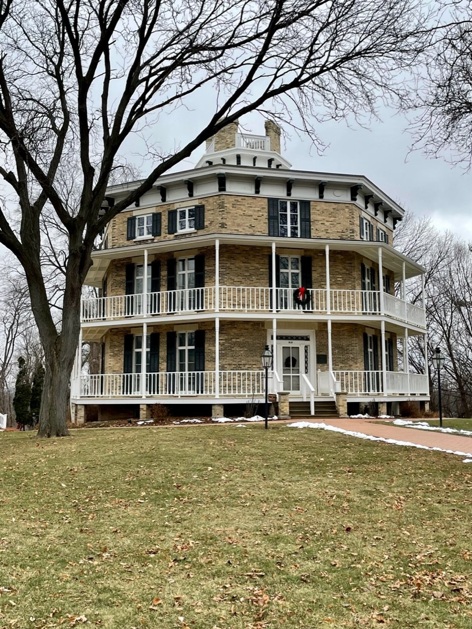 …with the neighbors, for coffee at the Berres Bro. HQ and coffee shop. On the way we stopped at the most famous octagonal house in Wisconsin.