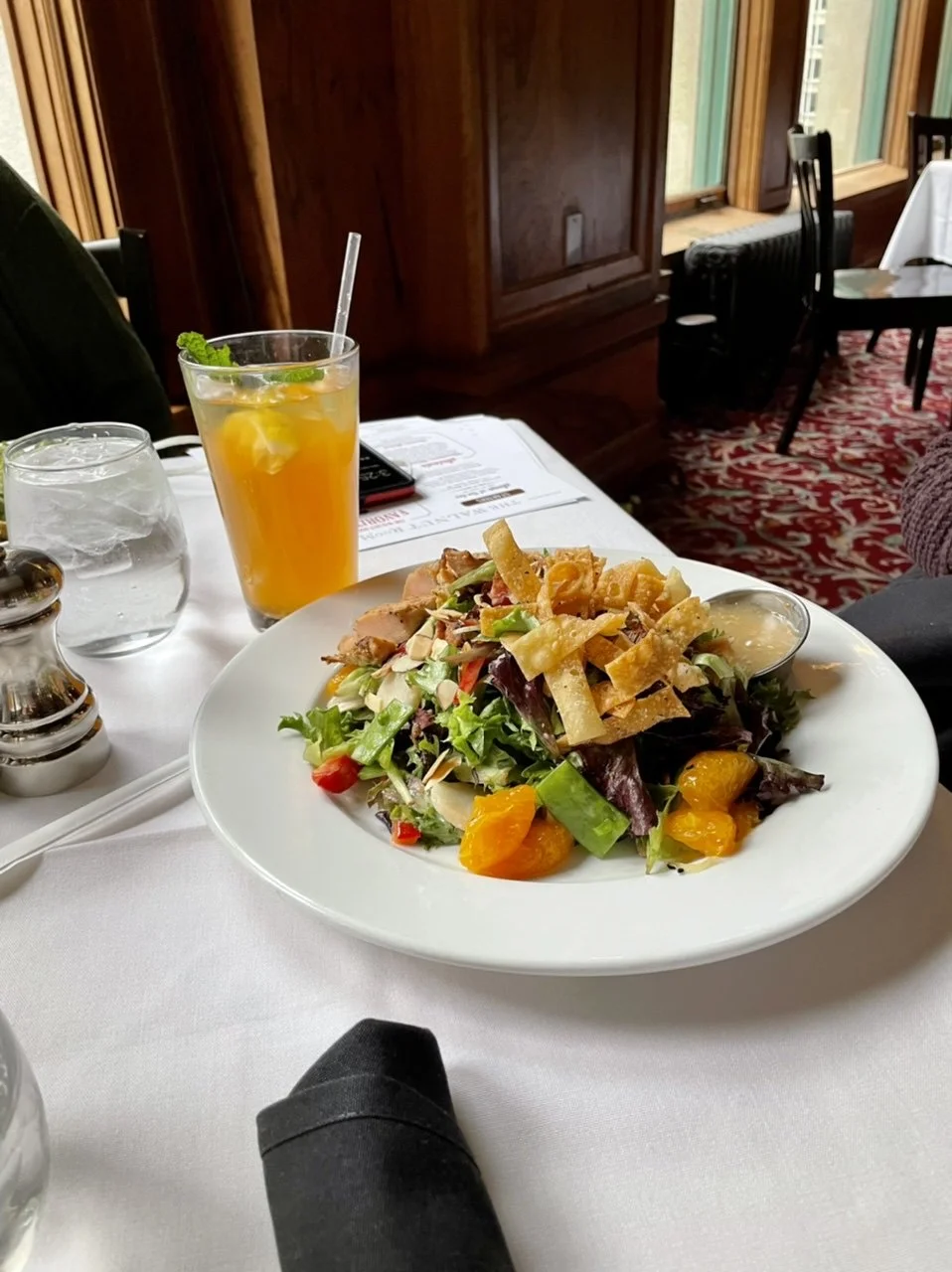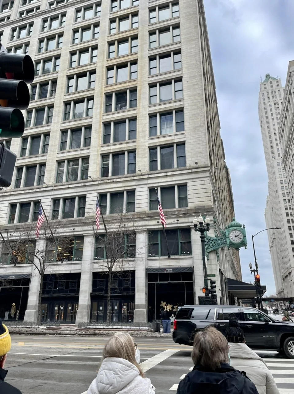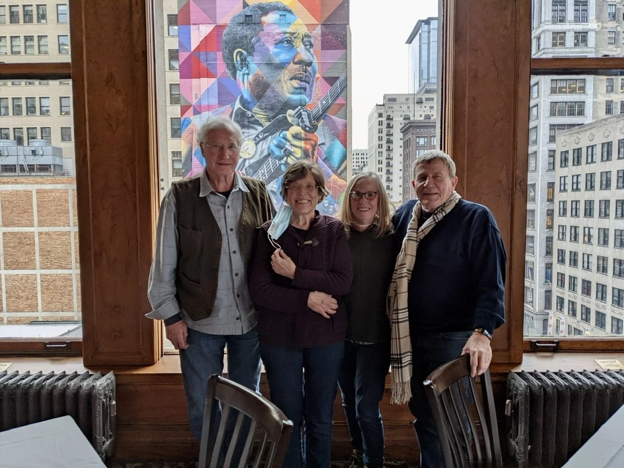 Two mile walk from Sheffield to and through Lincoln Park and then Lakefront Restaurant/Theatre On The Lake for tomato bisque and a glass of wine. Then Lyft to Macy’s (Marshall Field’s) where the Walnut room was set aside for the four of us, (with one exception, we were the only customers there) and where the salad was delicious. Subway back to the hacienda, and then a not-too-bad drive home.