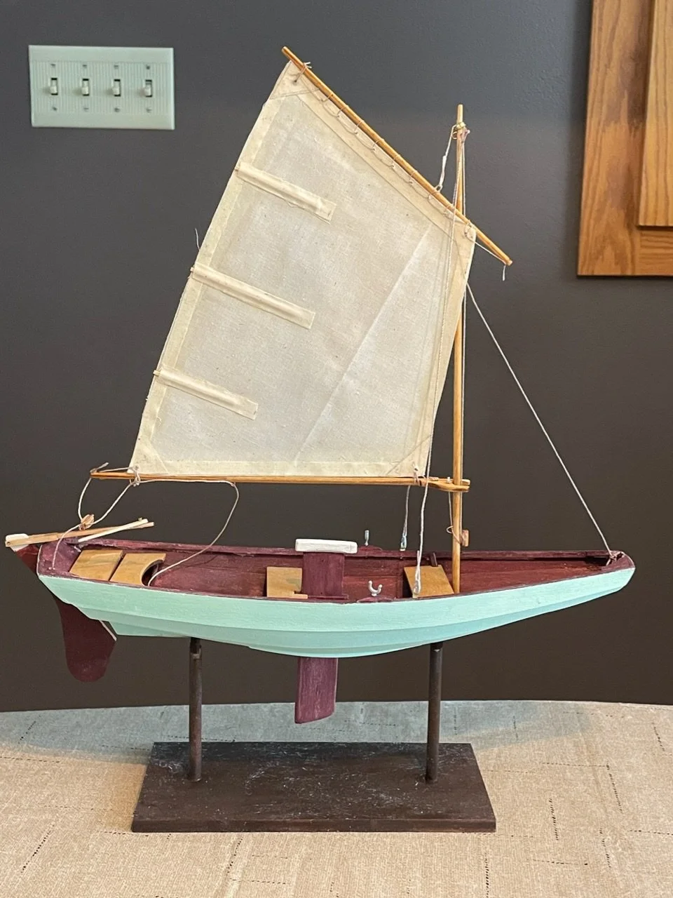 This model was a buggar. Although the model is based on an actual boat, the kind of construction seemed slightly un-seaworthy. Then the engineering of the model was annoying—overly convoluted for something that is really nothing more than a visual representation. And, the scale was so tiny that older eyesight and coordination were not up to the task. Thanks to Mimi for help rigging the darn thing.
