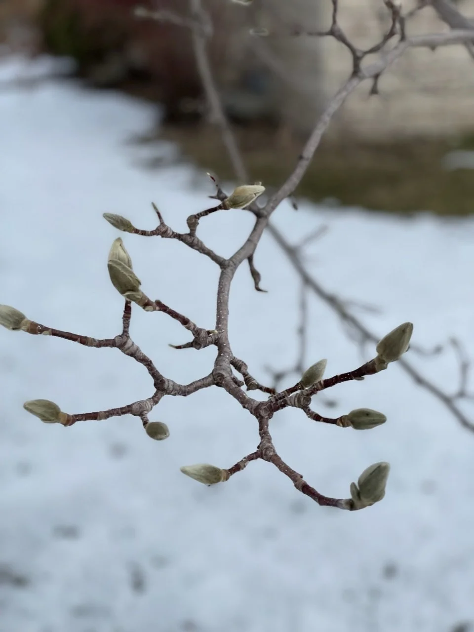 Apple tree and pear tree pruned (for looks and productivity), but otherwise mostly indoors.