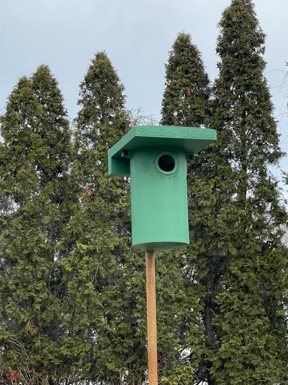 3D Printed Bluebird House… March 20, 2023 by Jim Nies …and dinner and Sequence at the neighbors’. Also, hippo birdie to Mimi.