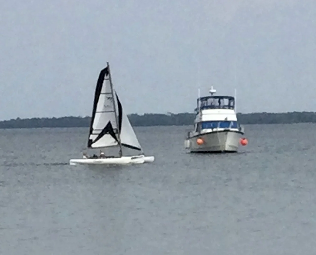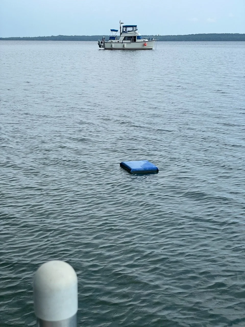 …anchored off the end of the pier. Probably seeking shelter from unsettled weather—thunderstorms sliding by just to the north (as usual).