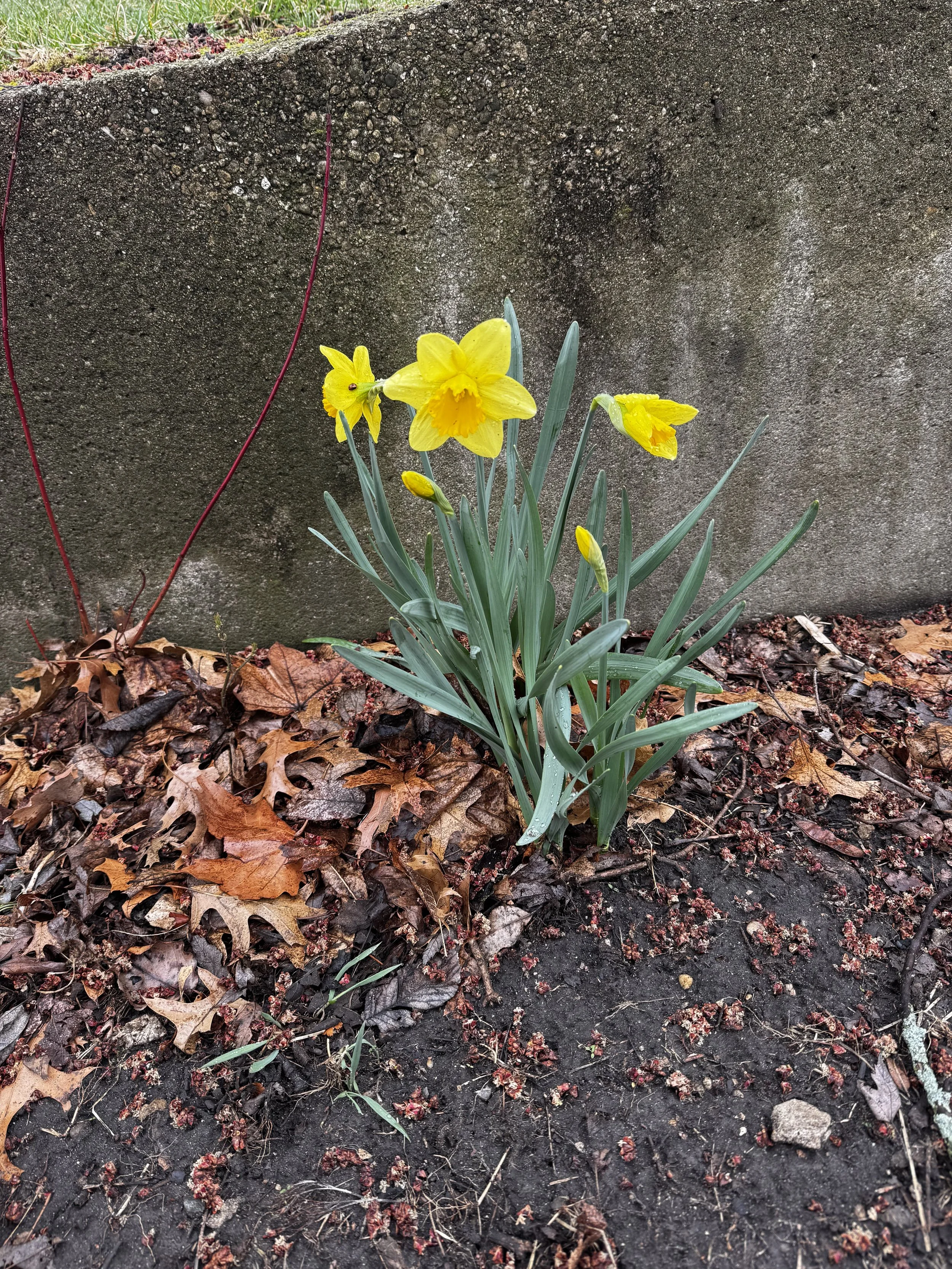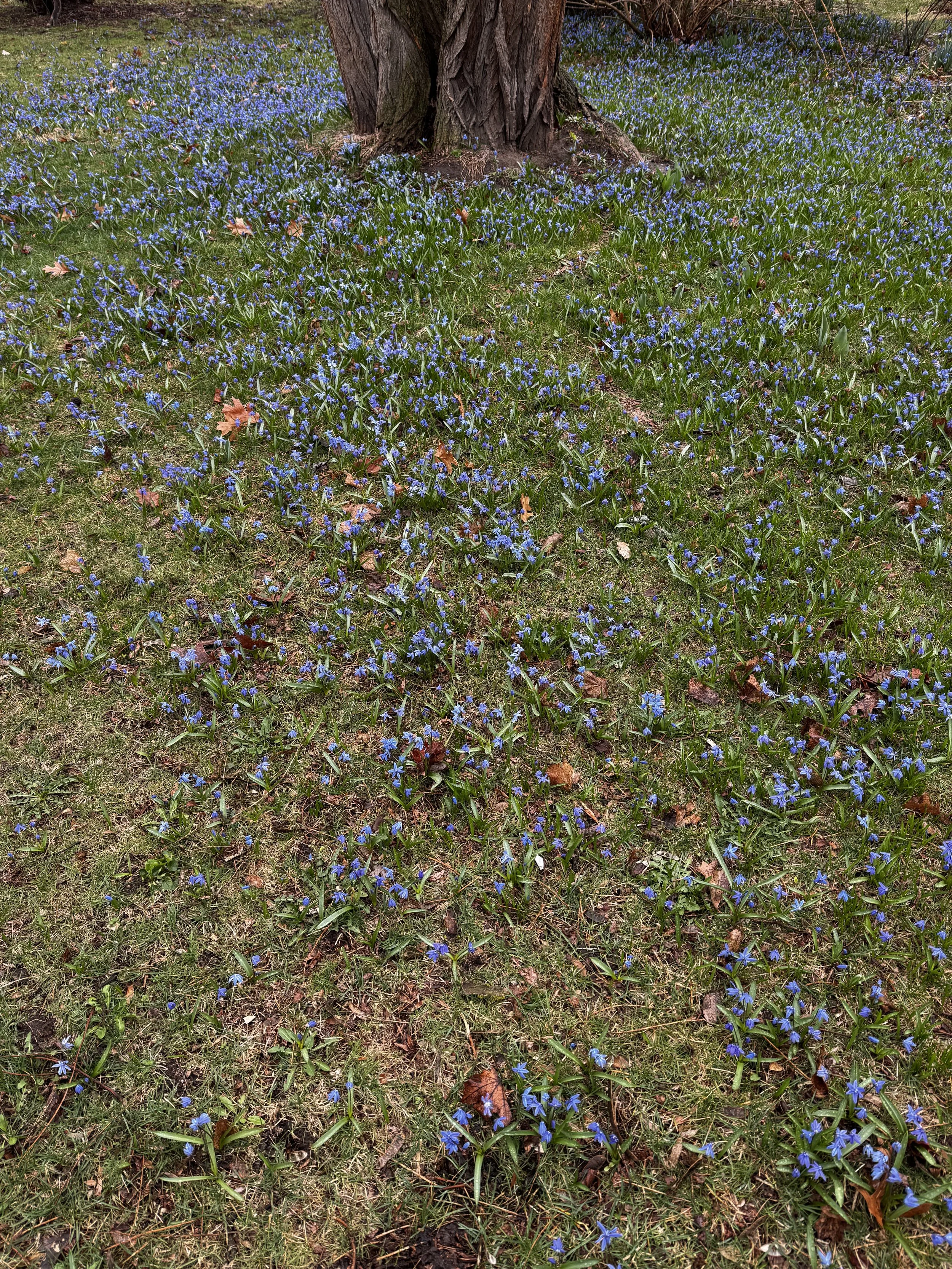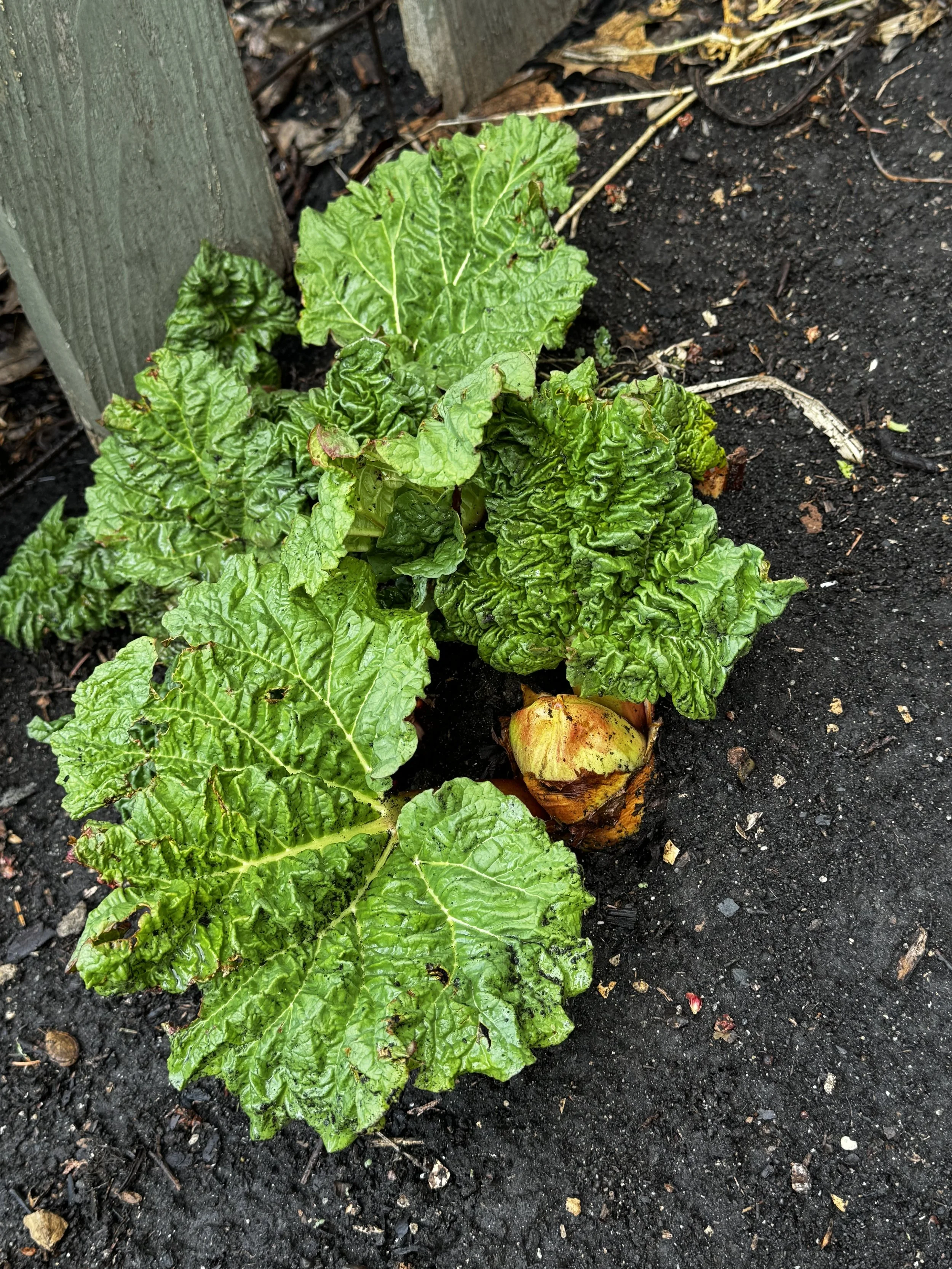 Squill, daffodils, rhubarb.