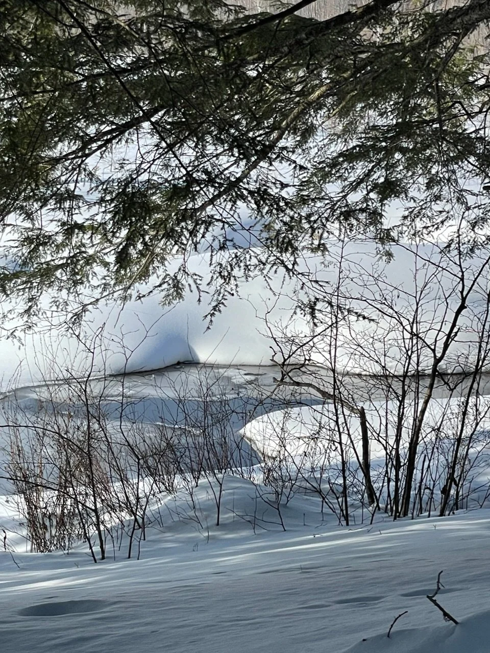 Apple tree and pear tree pruned (for looks and productivity), but otherwise mostly indoors.