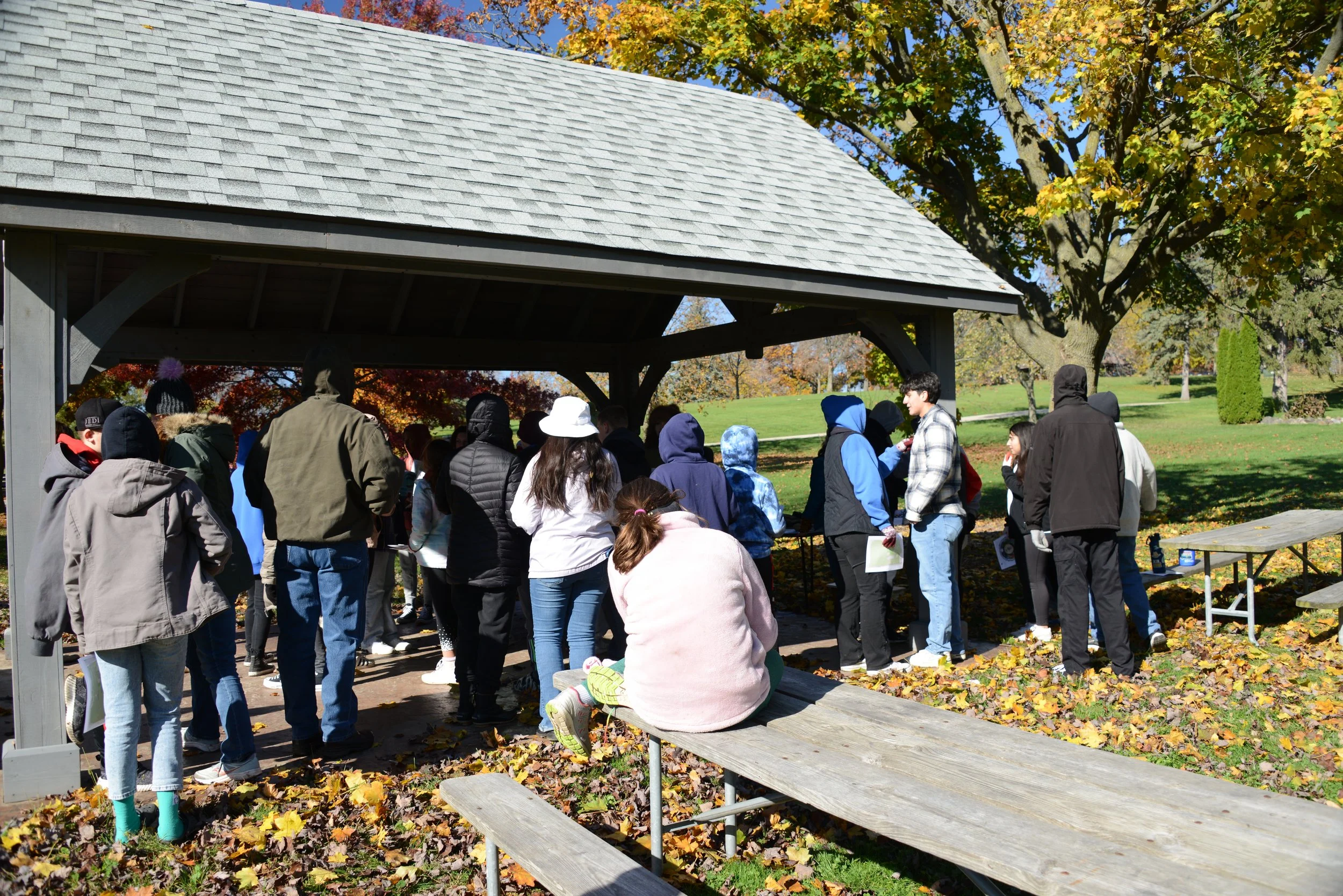 Above, evidence that the yard crew, in spite of the moisture, attended to Vi/Anna’s yard. Leaves know no boundaries, but workers do.