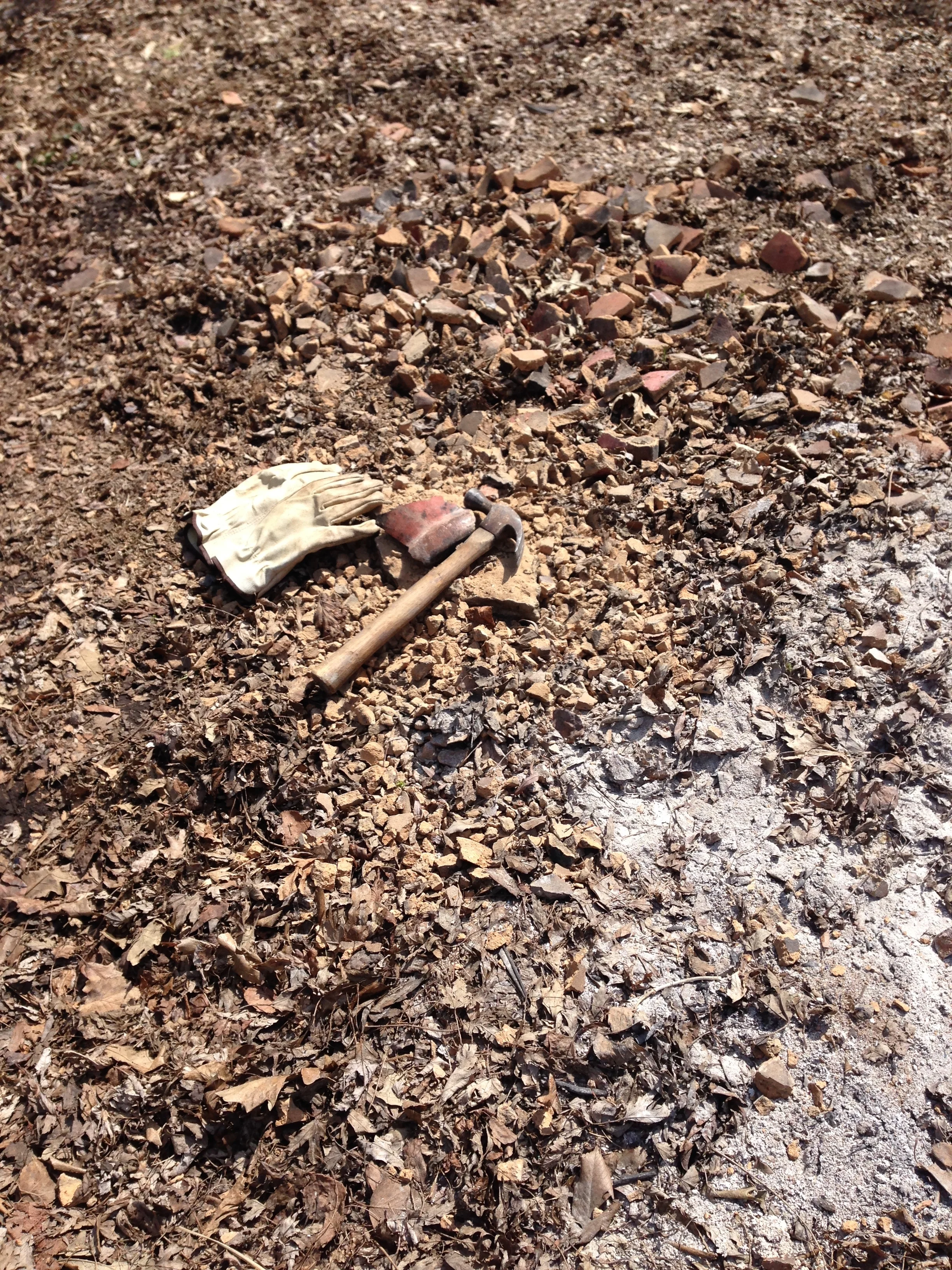 Spent a few hours pounding the old chiminea to pieces. The ancient Amazon indians turned sterile rainforest soil into highly productive gardens using charcoal (or biochar) and pottery fragments as soil amendments.